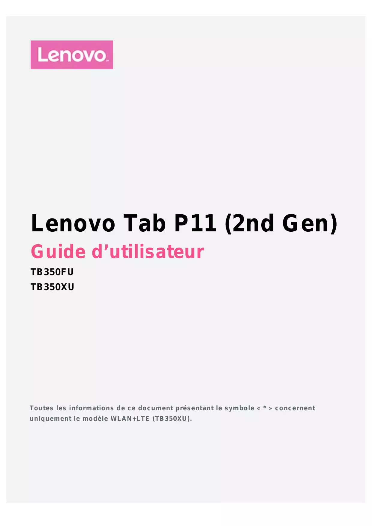 Lenovo Tab P11 (2nd Gen) Guide d’utilisateur
