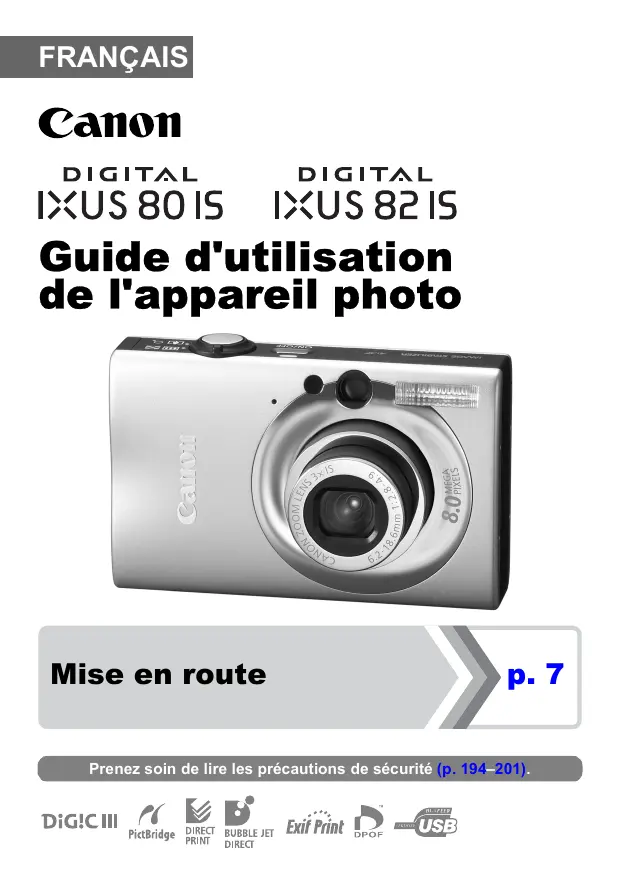 DIGITAL IXUS 80 IS - Appareil photo numérique CANON - Notice d'utilisation et mode d'emploi gratuit