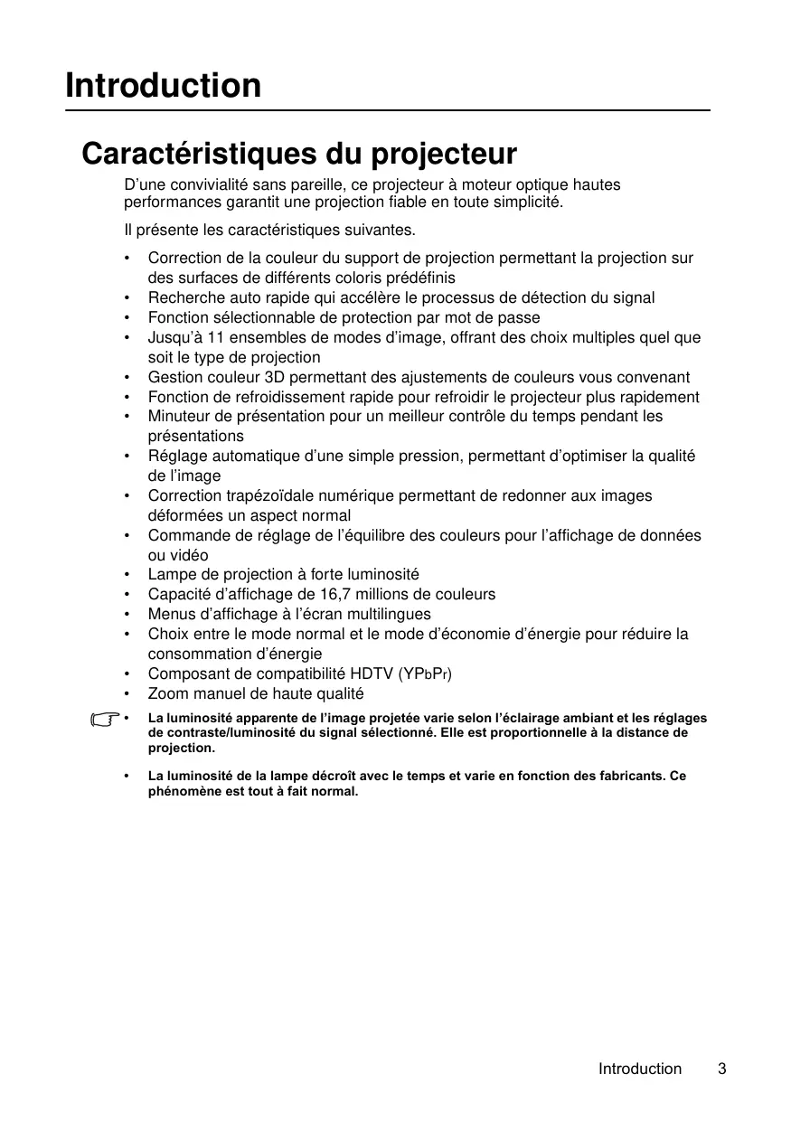 - DLP et Digital Micromirror Device (DMD) sont des marques commerciales de Texas Instruments. Toutes les autres marques sont la propriété de leurs détenteurs respectifs.