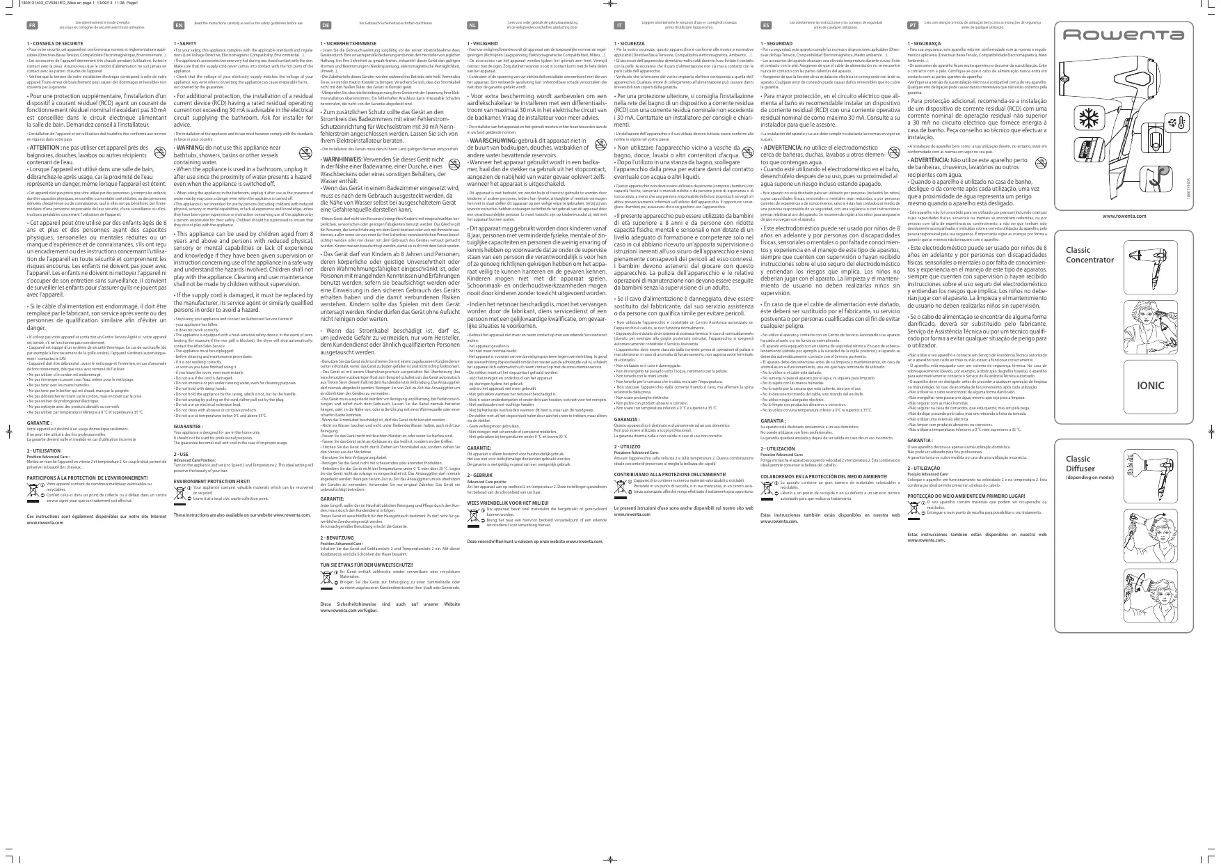 CV5351E0 - Sèche-cheveux ROWENTA - Notice d'utilisation et mode d'emploi gratuit