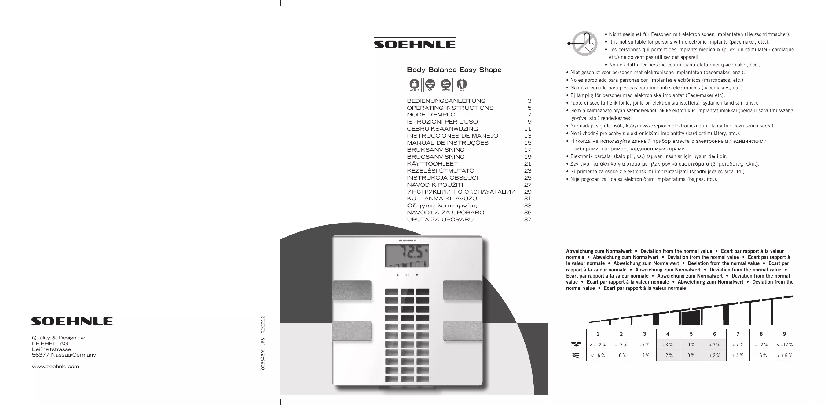 Téléchargez la notice de votre Pèse-personne au format PDF gratuitement ! Retrouvez votre notice 63815 EASY SHAPE - SOEHNLER et reprennez votre appareil électronique en main. Sur cette page sont publiés tous les documents nécessaires à l'utilisation de votre appareil 63815 EASY SHAPE de la marque SOEHNLER.