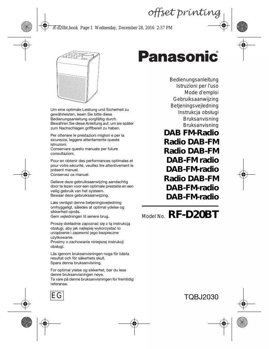 Retrouvez gratuitement la notice de l'appareil RF-D20BTEG-W PANASONIC au format PDF.