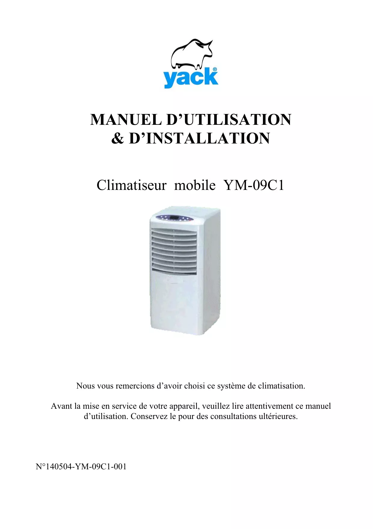 YM-09 C1 BLANC - Climatiseur YACK - Notice d'utilisation et mode d'emploi gratuit