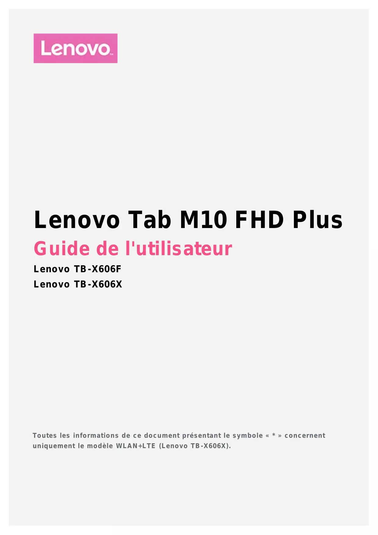 Lenovo TB-X606F Lenovo TB-X606X Toutes les informations de ce document présentant le symbole « * » concernent uniquement le modèle WLAN+LTE (Lenovo TB-X606X).