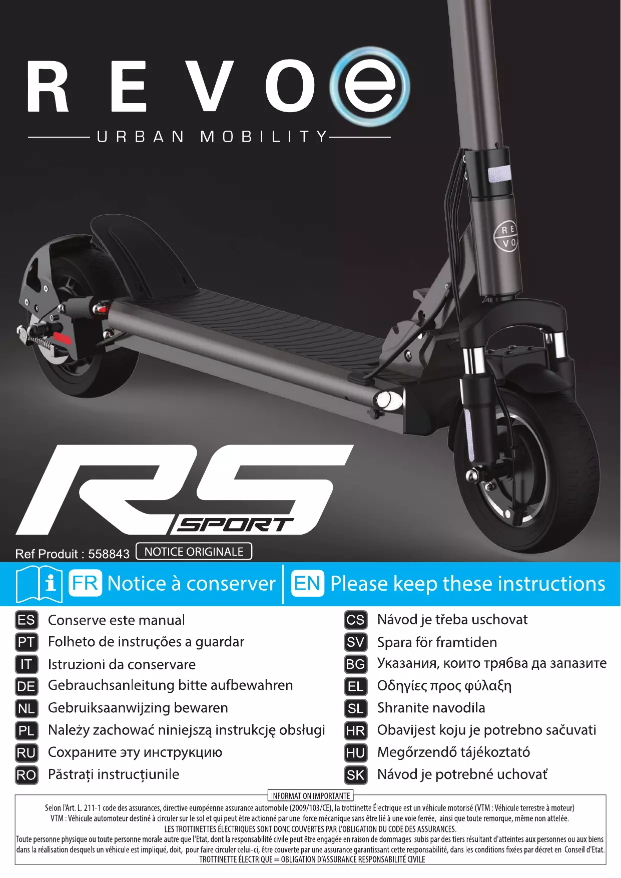 RS 500W - Trottinette électrique REVOE - Notice d'utilisation et mode d'emploi gratuit
