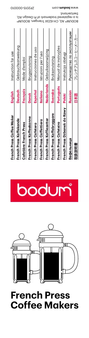 H1548-01-2 - Cafetière BODUM - Notice d'utilisation et mode d'emploi gratuit