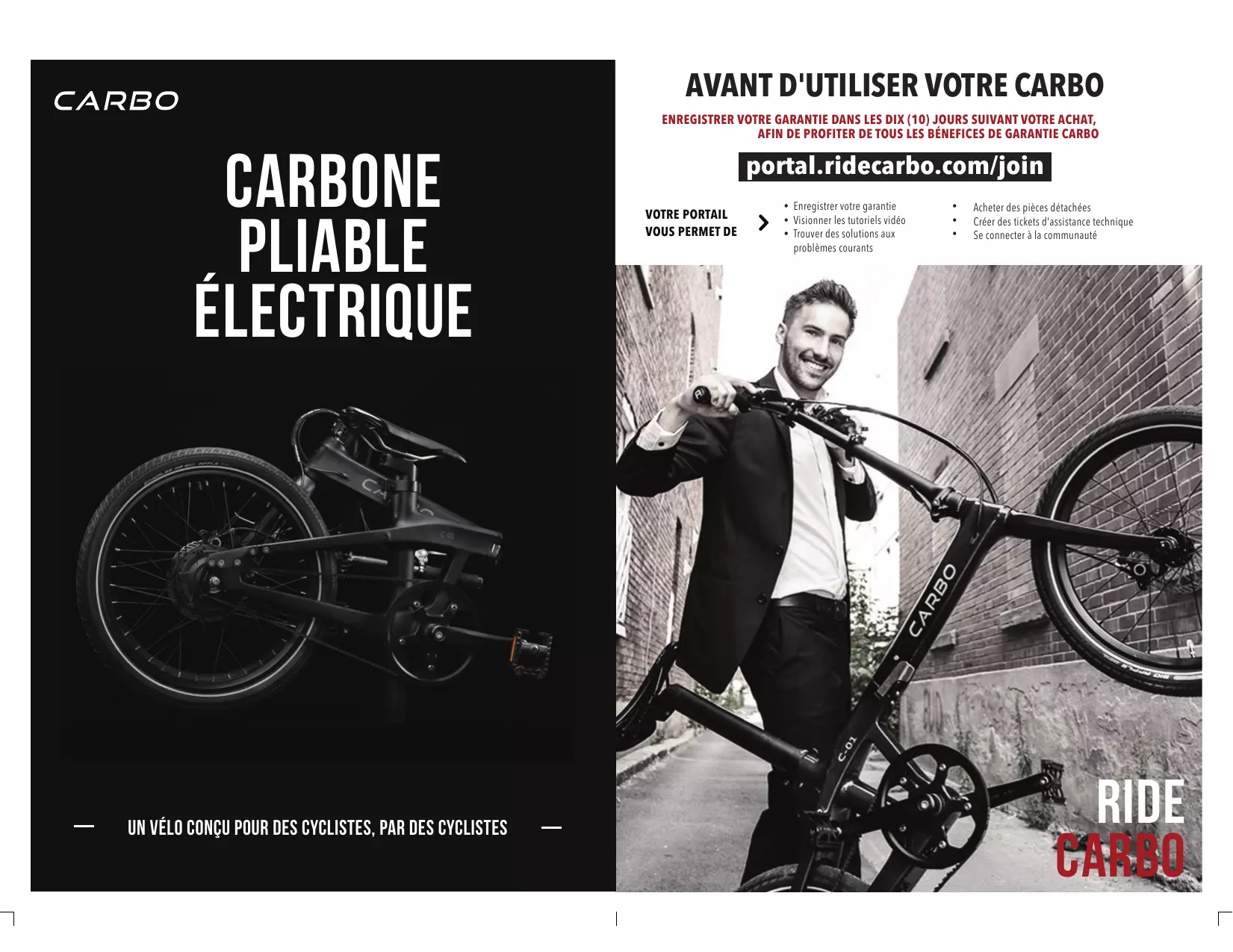 Félicitations pour l'achat de votre vélo électrique CARBO. Nous espérons que le CARBO changera votre façon de vous déplacer.