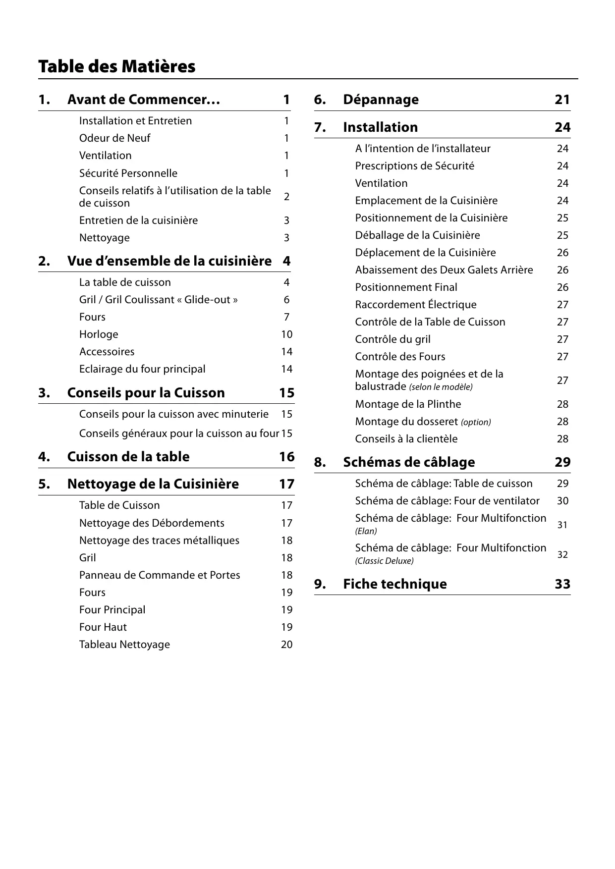 Nous vous remercions d'avoir acheté cette cuisinière. Installée et utilisée correctement, cette cuisinière vous donnera de nombreuses années de service fiable. Il est donc important de lire la présente section avant de commencer, en particulier si vous n'avez jamais utilisé de cuisinière à table de cuisson en vitrocéramique.