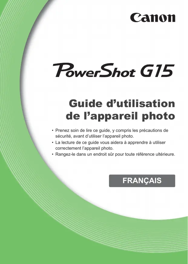 • Prenez soin de lire ce guide, y compris les précautions de sécurité, avant d’utiliser l’appareil photo. • La lecture de ce guide vous aidera à apprendre à utiliser correctement l’appareil photo. • Rangez-le dans un endroit sûr pour toute référence ultérieure.
