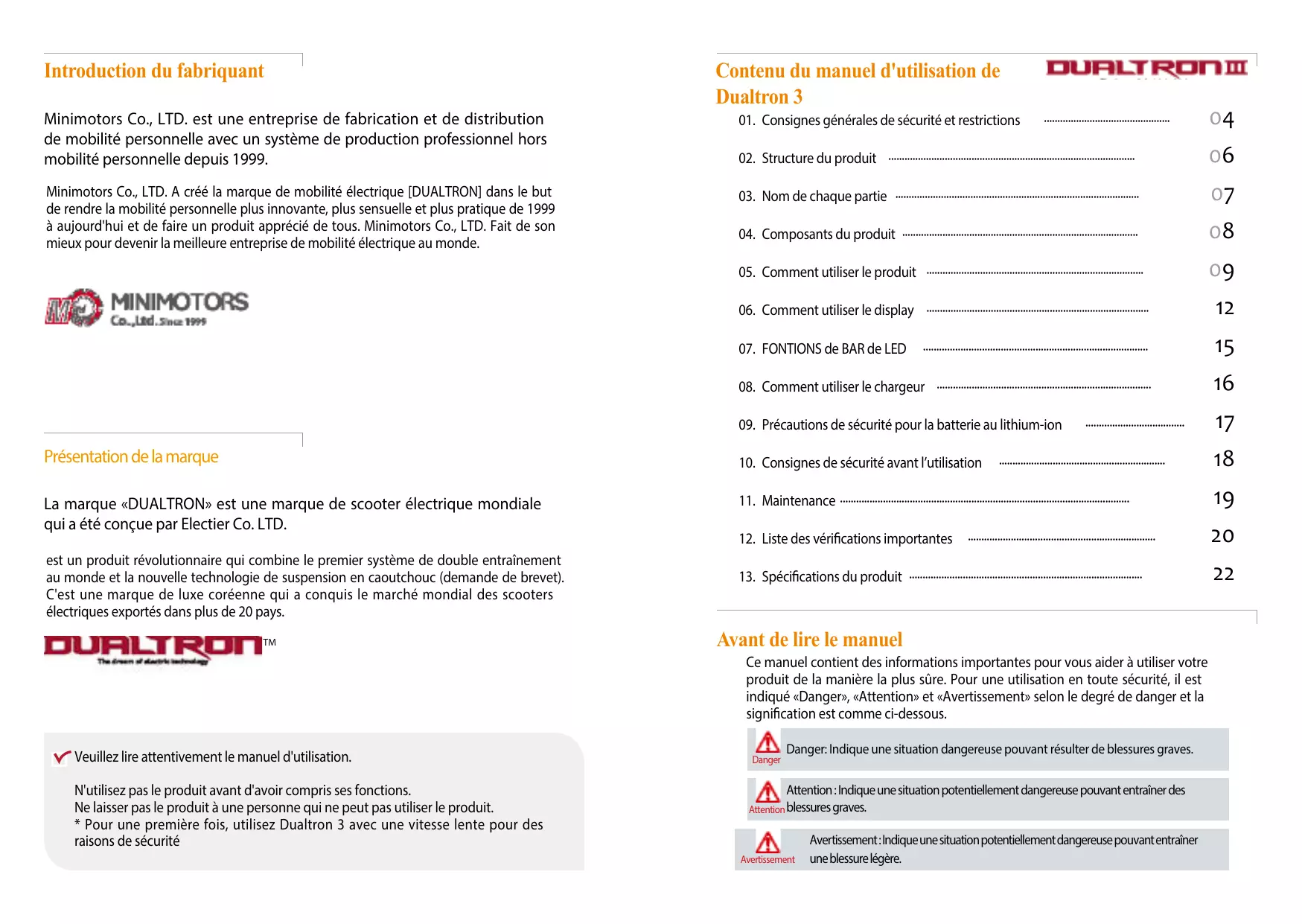 Minimotors Co., LTD. A créé la marque de mobilité électrique [DUALTRON] dans le but de prendre la mobilité personnelle plus innovante, plus sensuelle et plus pratique de 1999 à aujourd'hui et de faire un produit apprécié de tous. Minimotors Co., LTD. Fait de son mieux pour devenir la meilleure entreprise de mobilité électrique au monde.