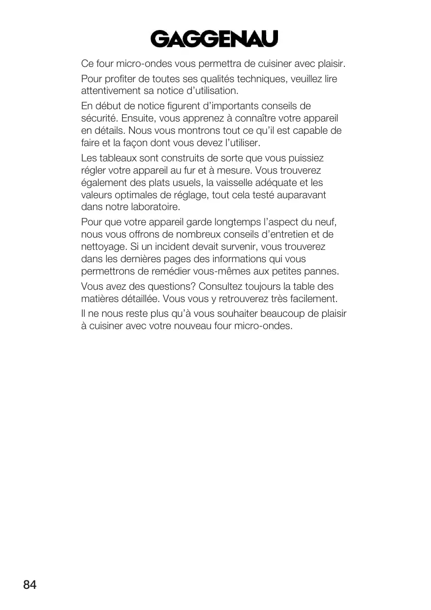 Il ne nous reste plus qu'à vous souhaiter beaucoup de plaisir en cuisine avec votre nouveau four micro-ondes.
