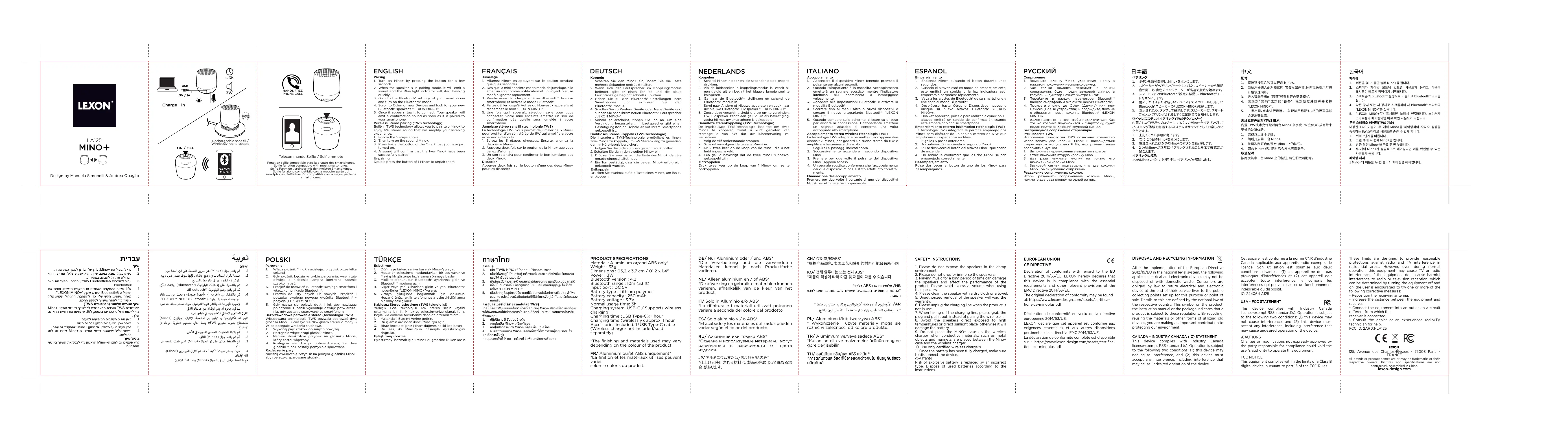 La déclaration de conformité complète est disponible sur: https://www.lexon-design.com/assets/certifications-ce-minoplus.pdf