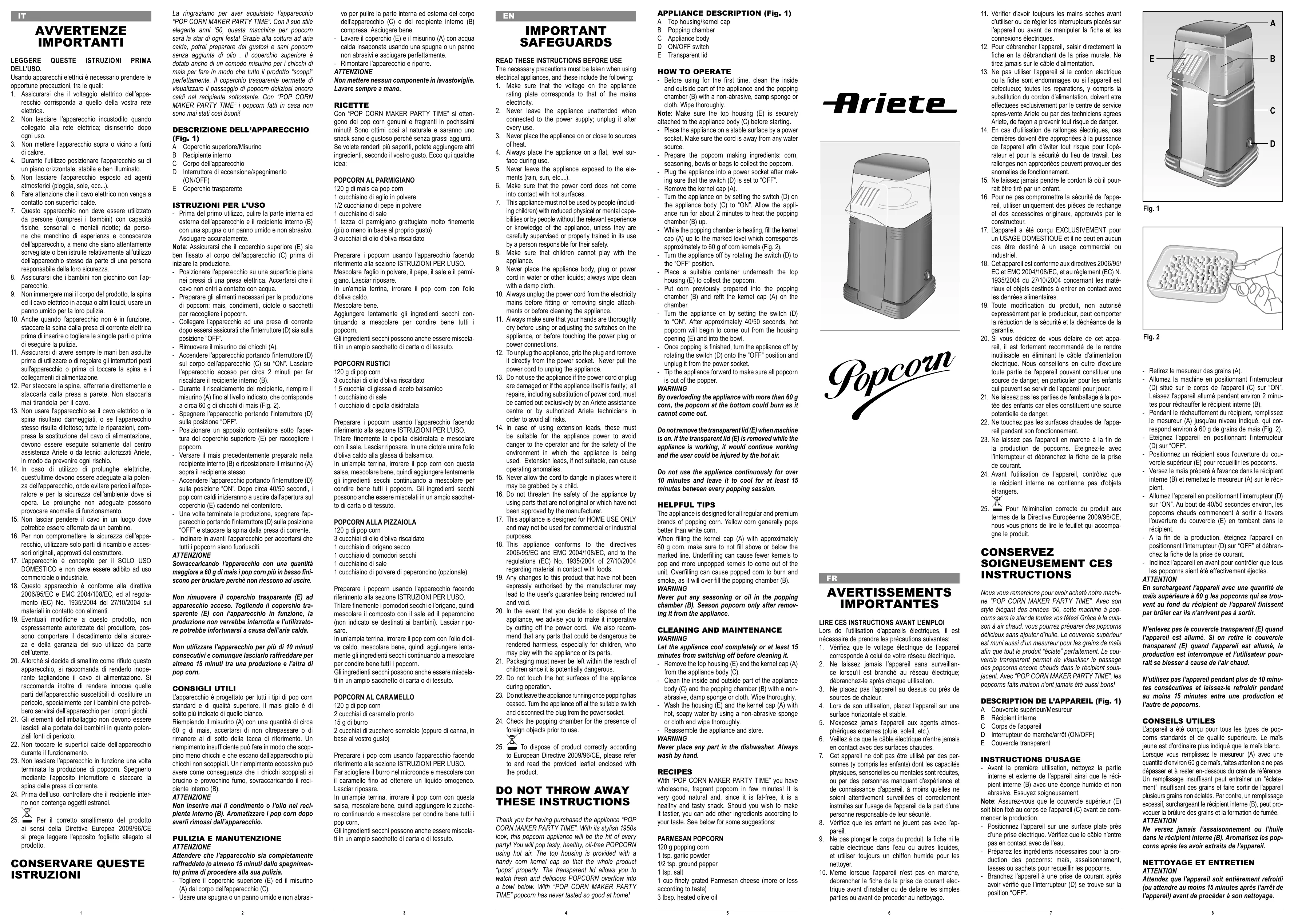 MODE D'EMPLOI POPCORN MAKER 2952 ARIETEREFERENCE