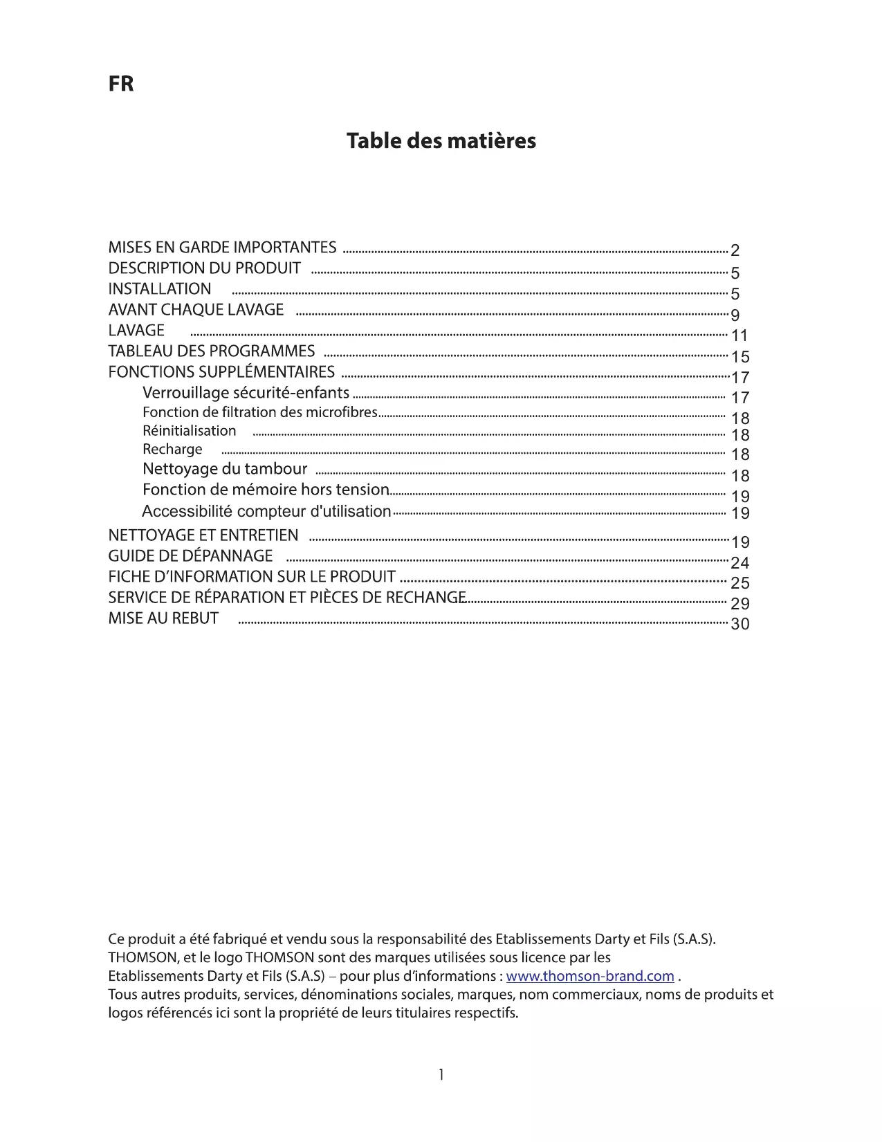 TW1412AWHCSLAVE - Linge THOMSON - Notice d'utilisation et mode d'emploi gratuit