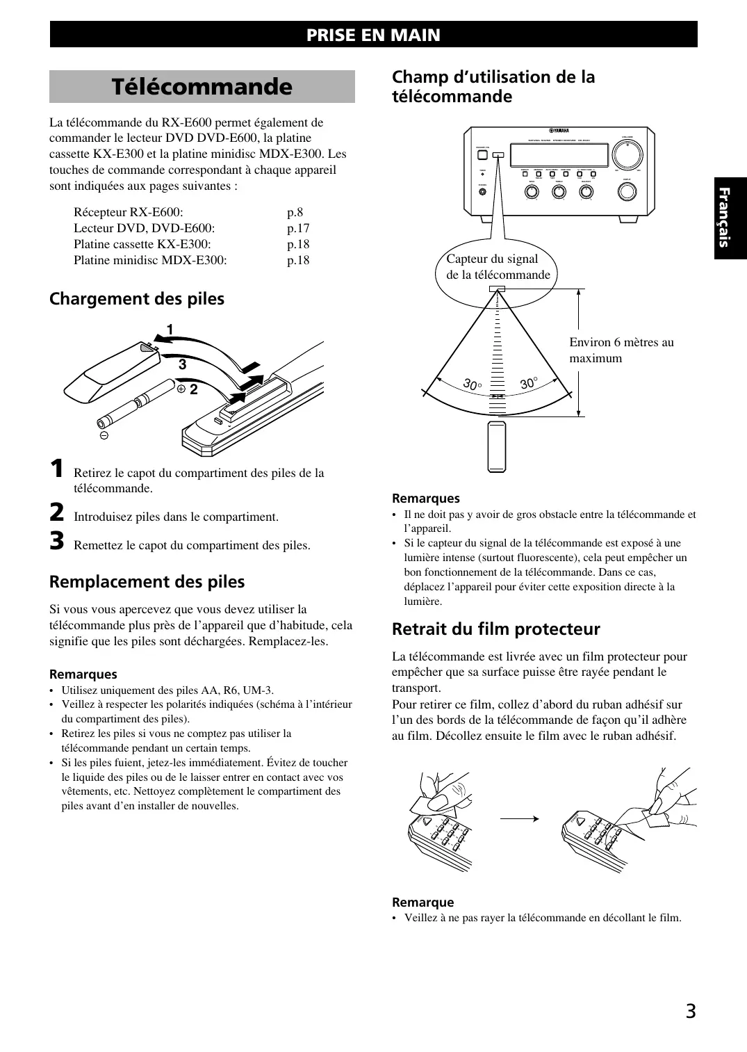 E600 - Récepteur audio-vidéo YAMAHA - Notice d'utilisation et mode d'emploi gratuit