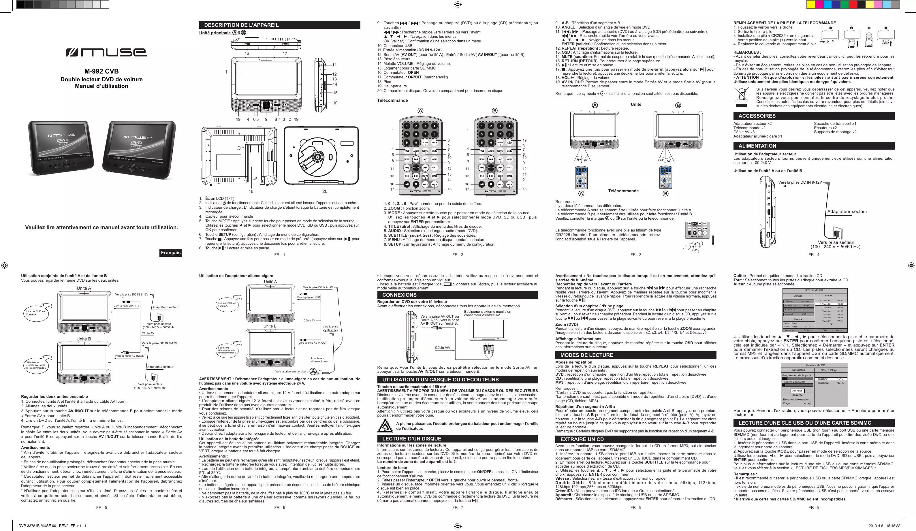 M-992 CVB Double lecteur DVD de voiture Manuel d'utilisation