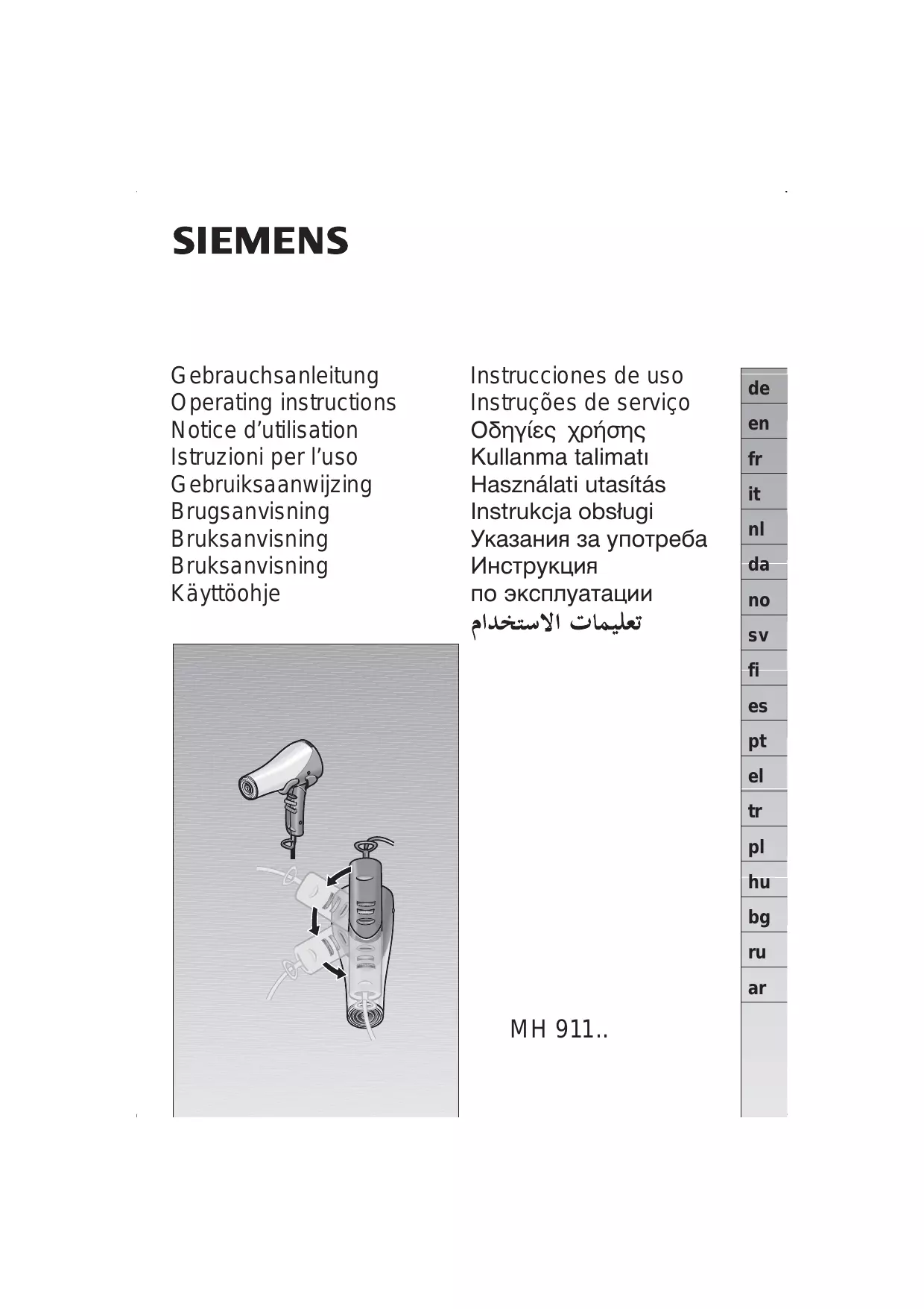 MH91101 - Sèche-cheveux SIEMENS - Notice d'utilisation et mode d'emploi gratuit