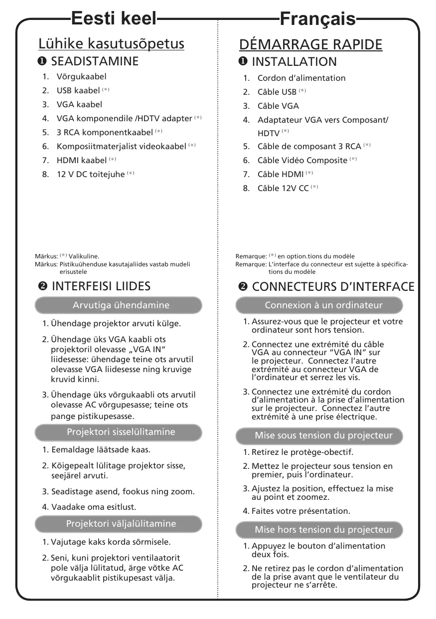 INTERFEISI LIIDES Arvutiga ühendamine 1. Ühendage projektor arvuti külge. 2. Ühendage üks VGA kaabli ots projektoril olevasse „VGA IN“ liidesesse: ühendage teine ots arvutil olevasse VGA liidesesse ning kruvige kruvid kinni.