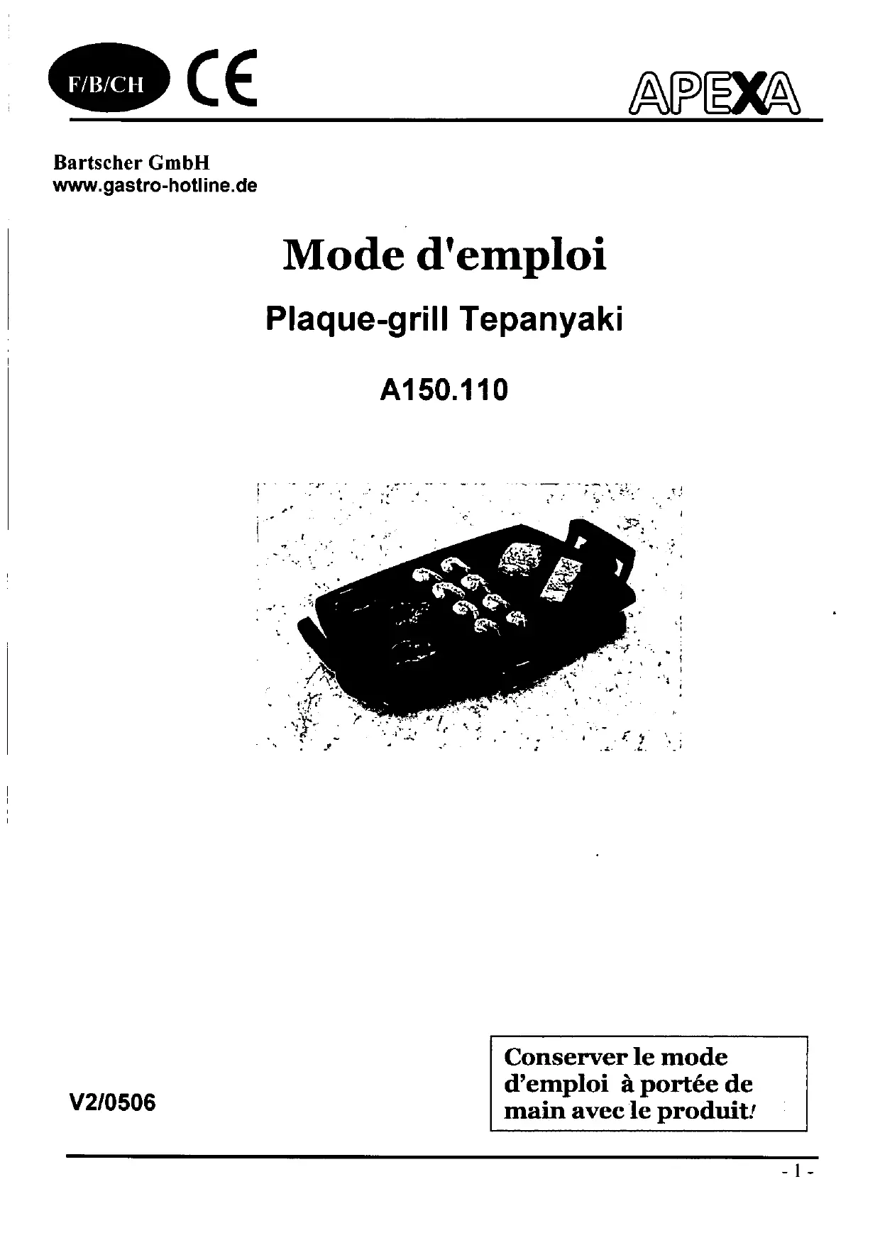 Téléchargez la notice de votre Gril électrique au format PDF gratuitement ! Retrouvez votre notice A 150.110 - APEXA et reprennez votre appareil électronique en main. Sur cette page sont publiés tous les documents nécessaires à l'utilisation de votre appareil A 150.110 de la marque APEXA.