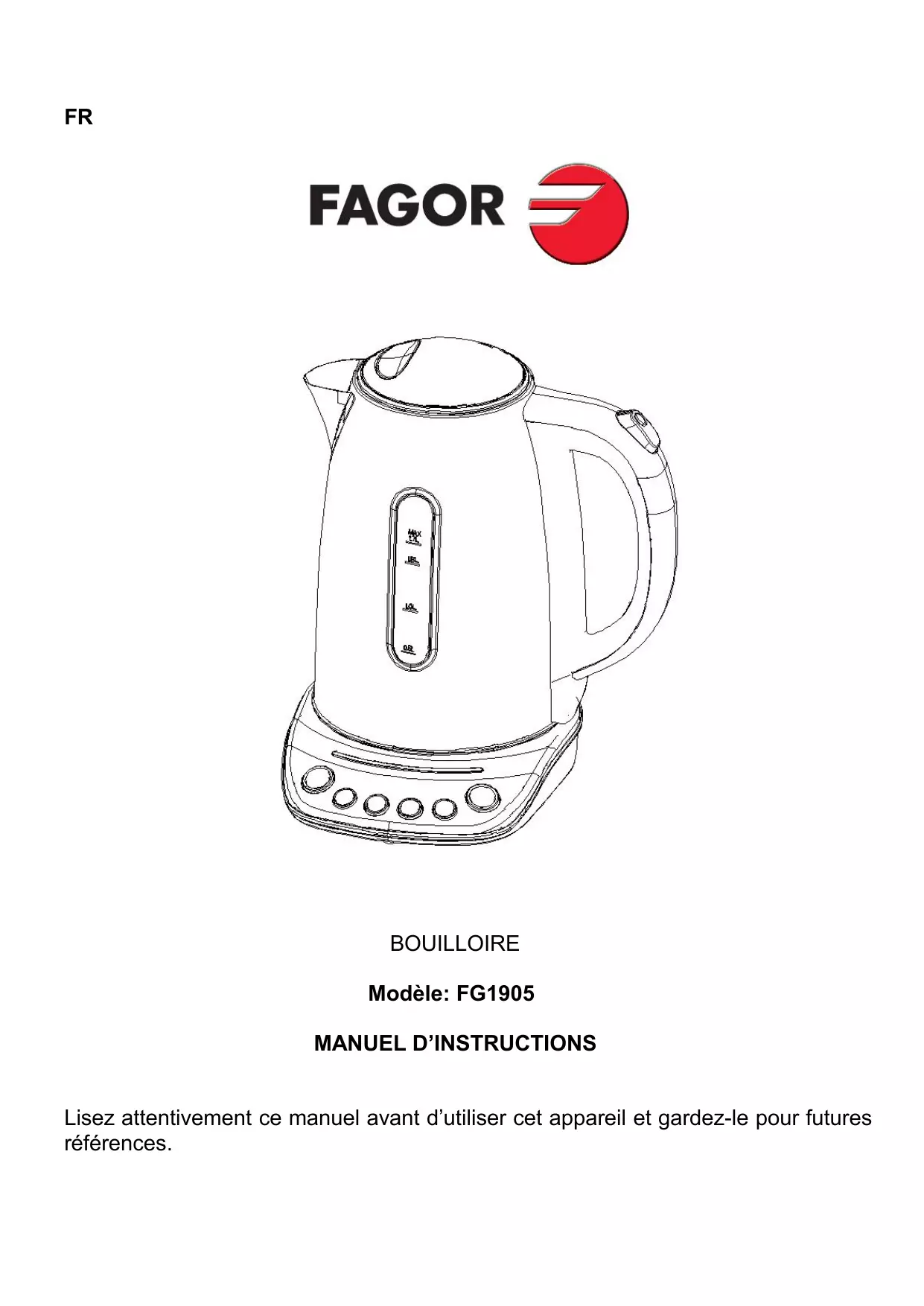 FG1905 - Bouilloire électrique FAGOR - Notice d'utilisation et mode d'emploi gratuit