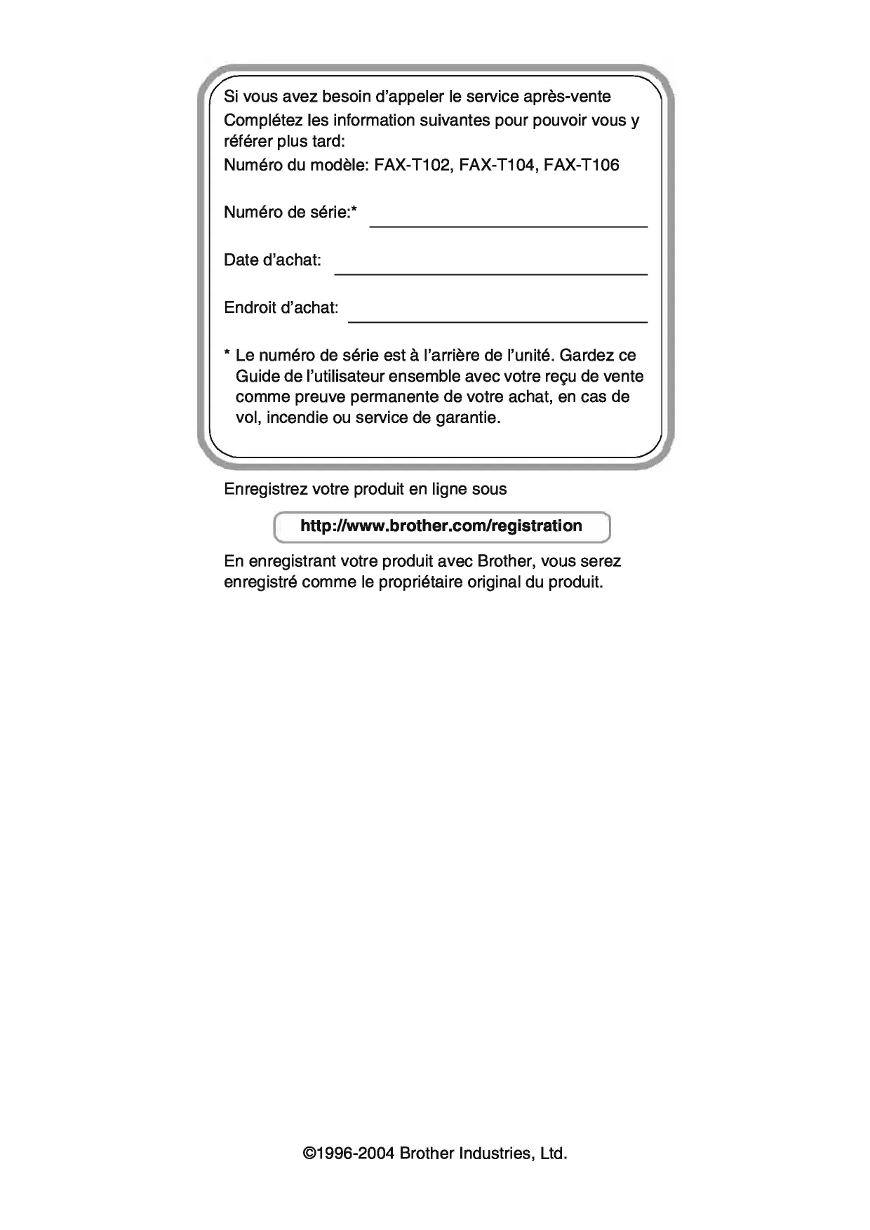 Téléchargez la notice de votre Fax au format PDF gratuitement ! Retrouvez votre notice T-102 - BROTHER et reprennez votre appareil électronique en main. Sur cette page sont publiés tous les documents nécessaires à l'utilisation de votre appareil T-102 de la marque BROTHER.