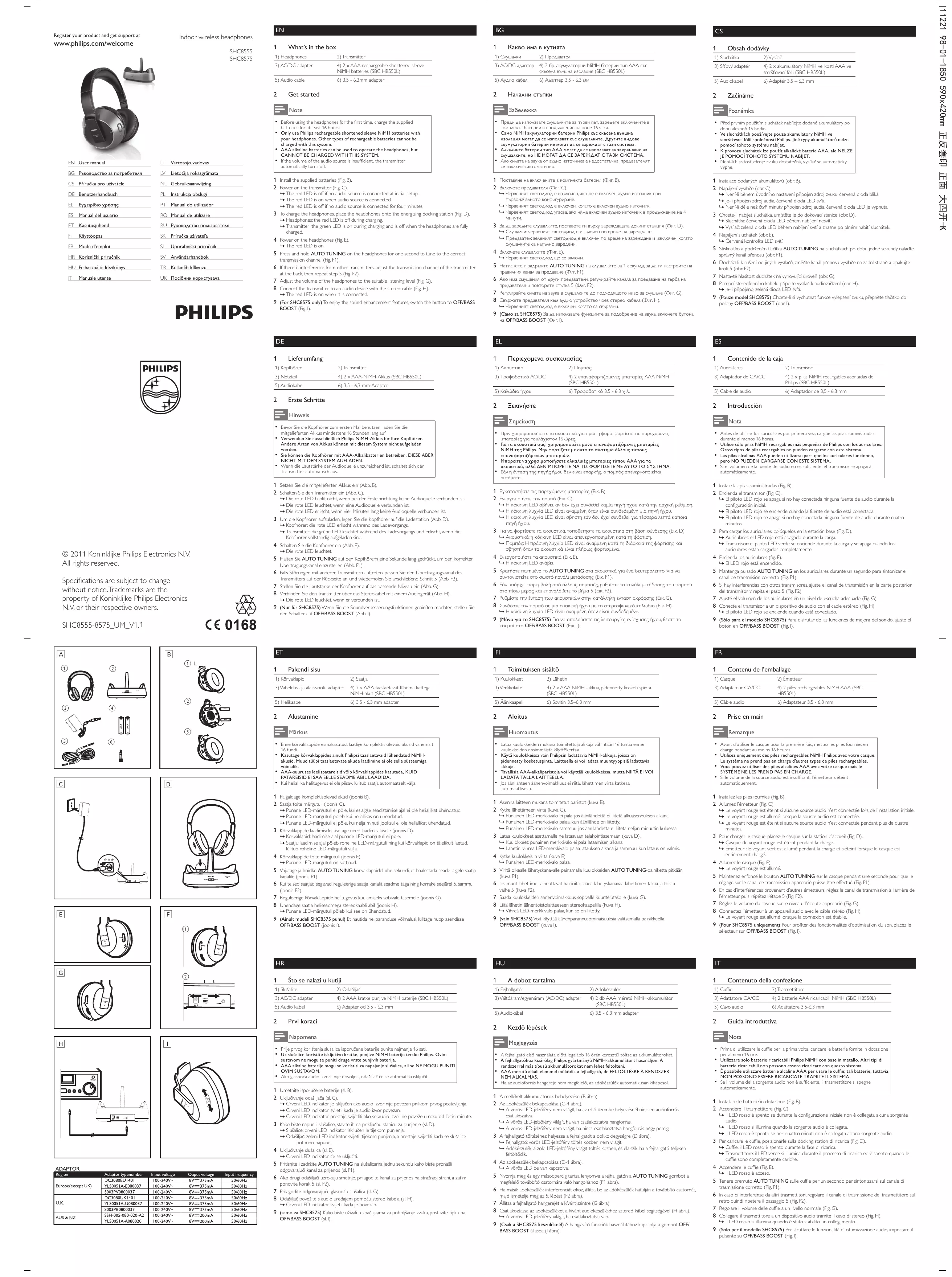 SHC8555SHC8575 - Casque sans fil PHILIPS - Notice d'utilisation et mode d'emploi gratuit