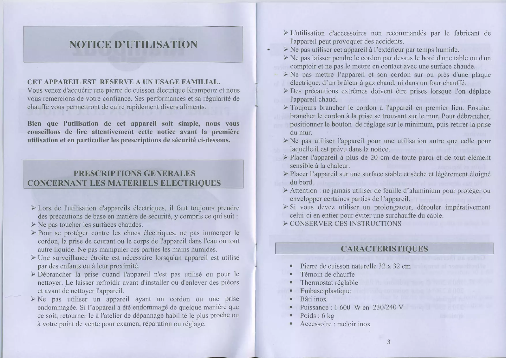 Bien que l'utilisation de cet appareil soit simple, nous vous conseillons de lire attentivement cette notice avant la première utilisation et en particulier les prescriptions de sécurité ci-dessous.