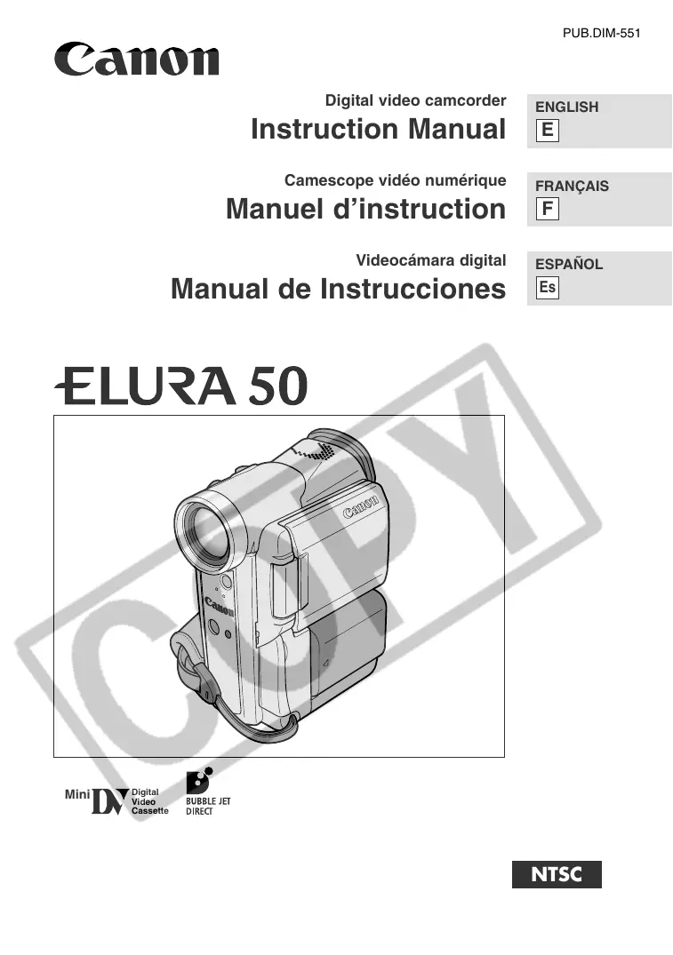 Téléchargez la notice de votre Caméscope au format PDF gratuitement ! Retrouvez votre notice ELURA 50 - CANON et reprennez votre appareil électronique en main. Sur cette page sont publiés tous les documents nécessaires à l'utilisation de votre appareil ELURA 50 de la marque CANON.