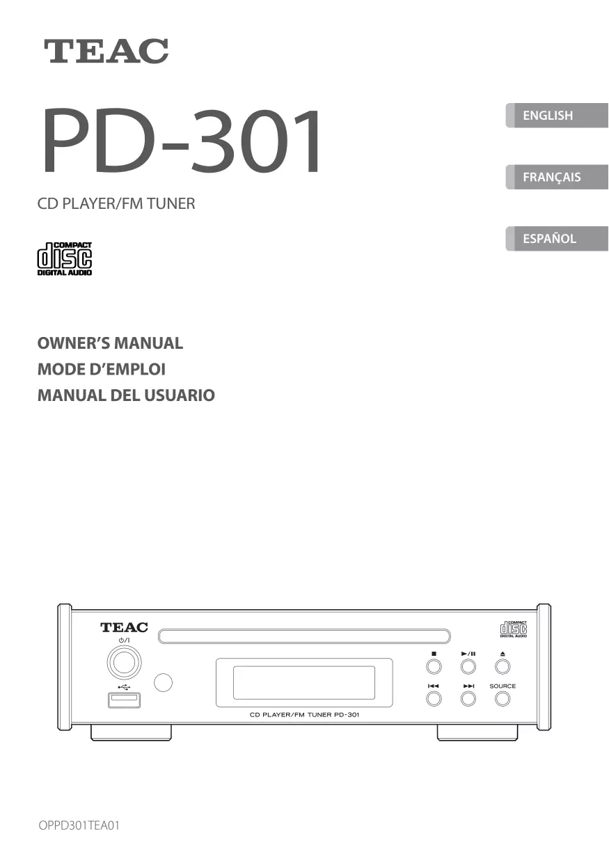 Téléchargez la notice de votre CD PLAYER/FM TUNER au format PDF gratuitement ! Retrouvez votre notice PD301 - TEAC et reprennez votre appareil électronique en main. Sur cette page sont publiés tous les documents nécessaires à l'utilisation de votre appareil PD301 de la marque TEAC.