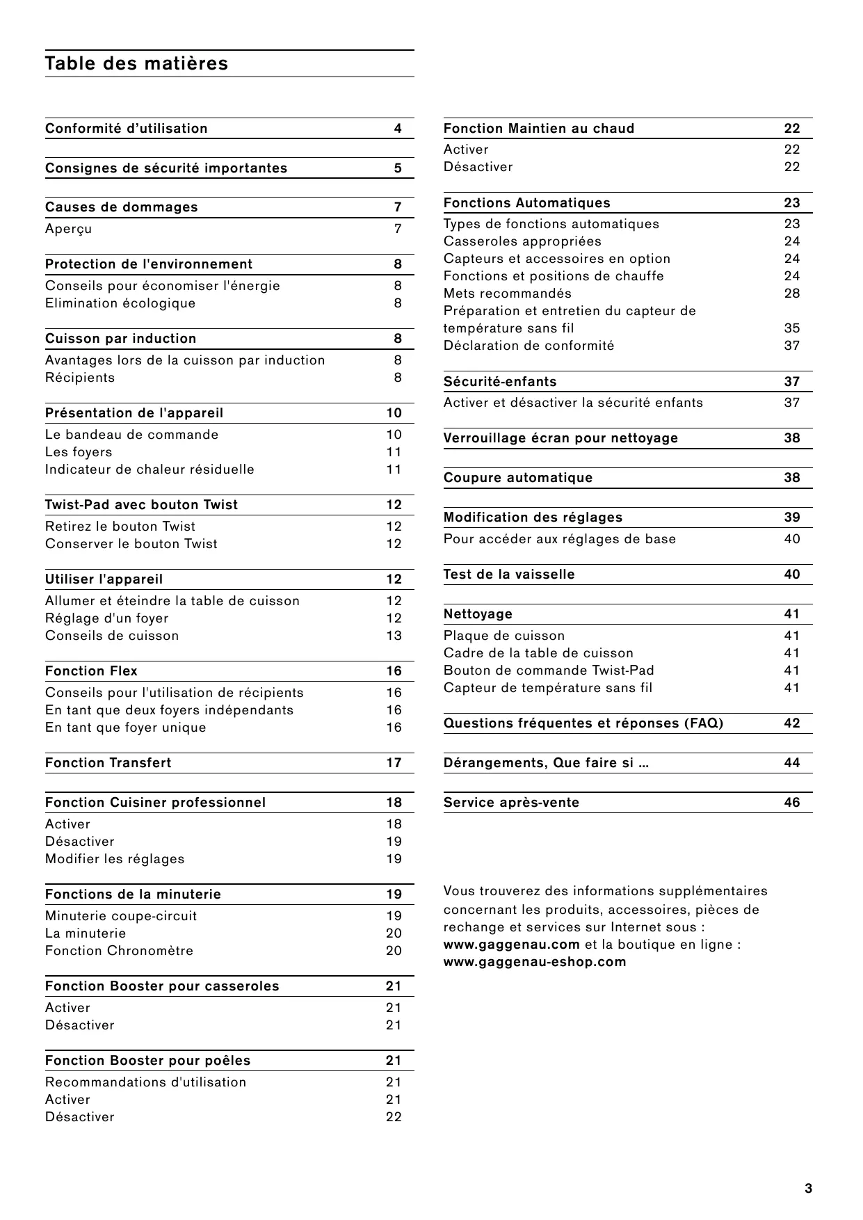 Vous trouverez des informations supplémentaires concernant les produits, accessoires, pieces de rechange et services sur Internet sous : www.gaggenau.com et la boutique en ligne :