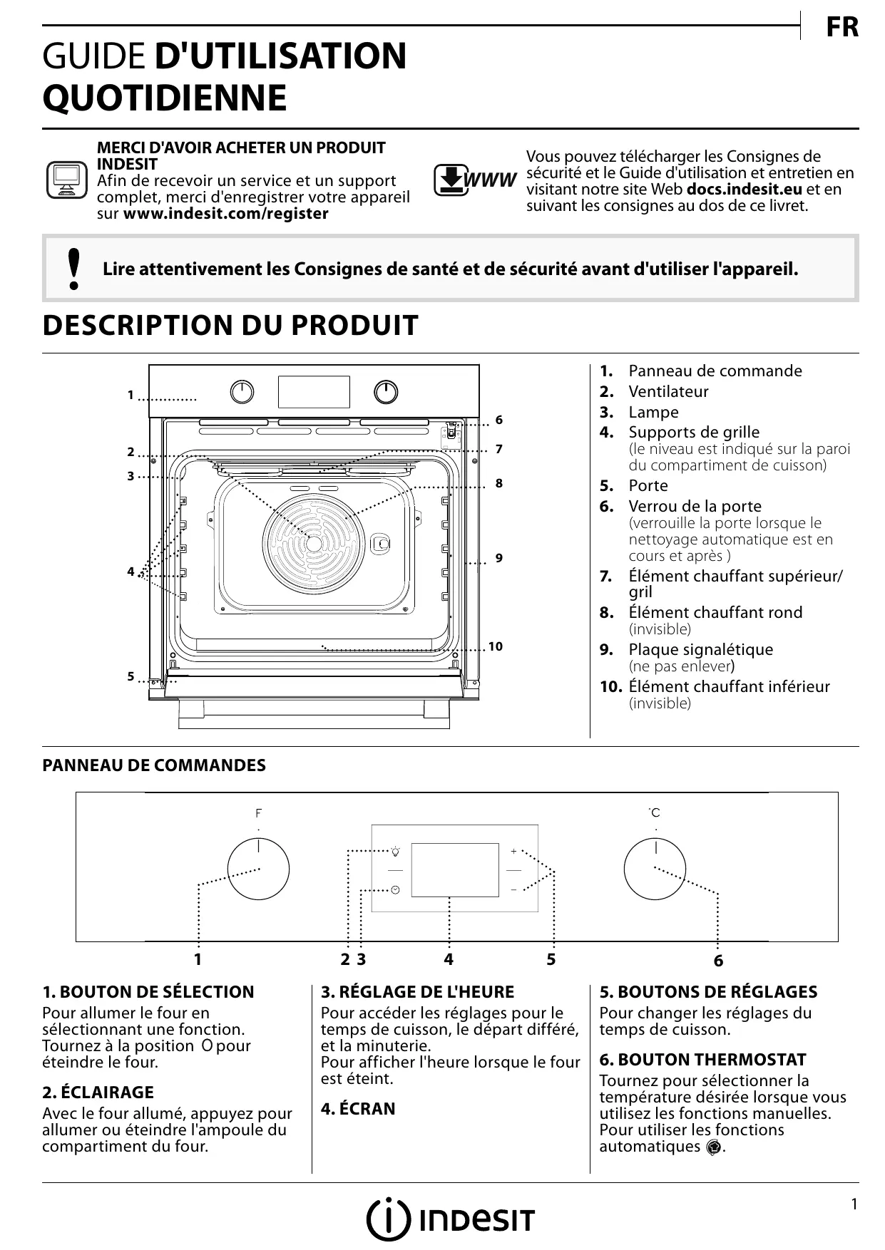 FR GUIDE D'UTILISATION QUOTIDIENNE MERCI D'AVOIR ACHETER UN PRODUIT INDESIT Afin de recevoir un service et un support complet, merci d'enregistrer votre appareil sur www.indesit.com/register