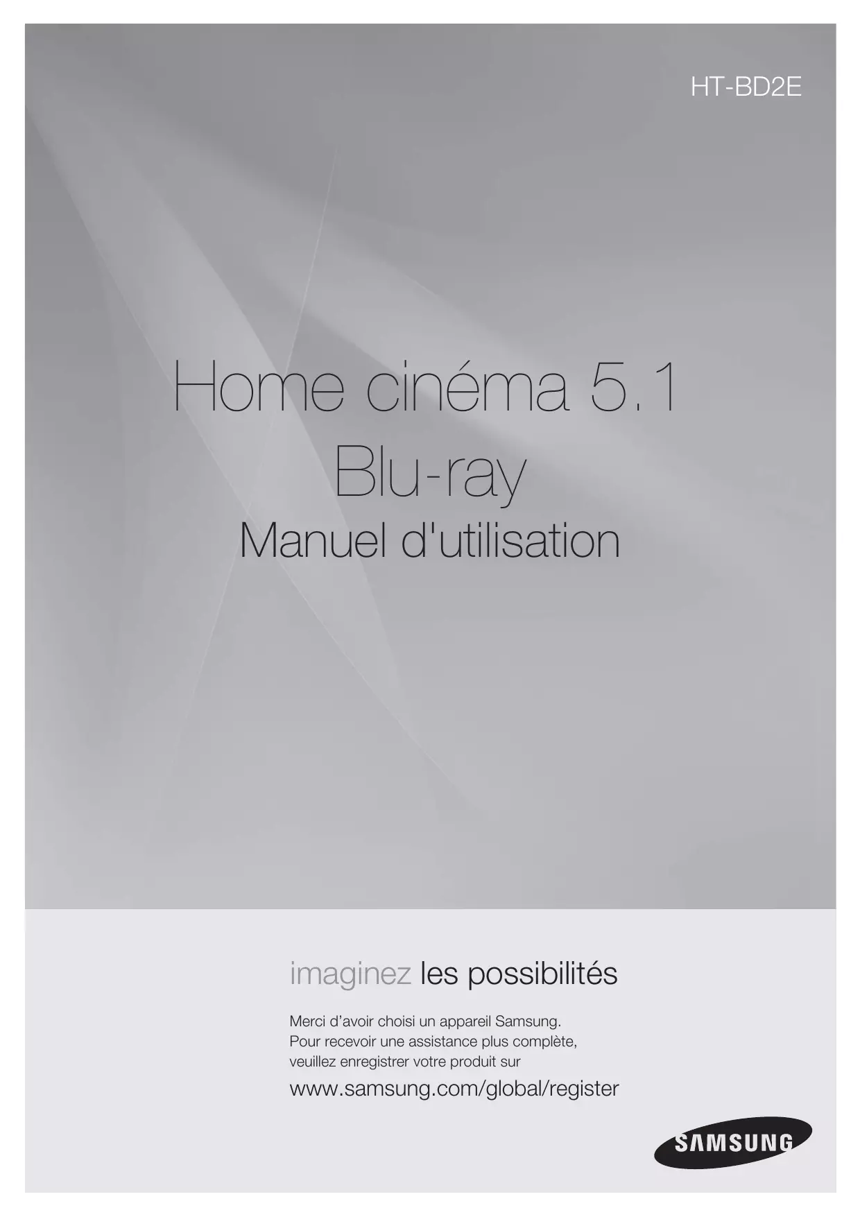 HT-BD2E Home cinéma 5.1 Blu-ray Manuel d'utilisation imaginez les possibilités Merci d’avoir choisi un appareil Samsung. Pour recevoir une assistance plus complète, veuillez enregistrer votre produit sur www.samsung.com/global/register caractéristiques principales de votre nouveau Home cinéma Blu-ray