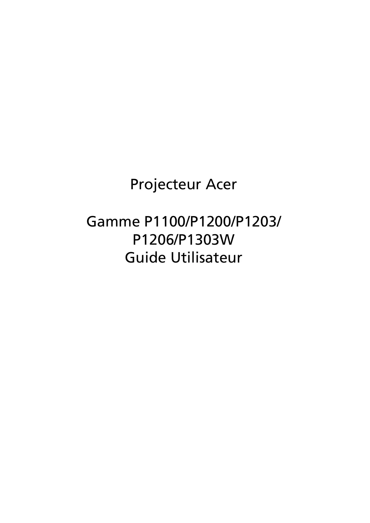 Projecteur Acer Gamme P1100/P1200/P1203/ P1206/P1303W Guide Utilisateur
