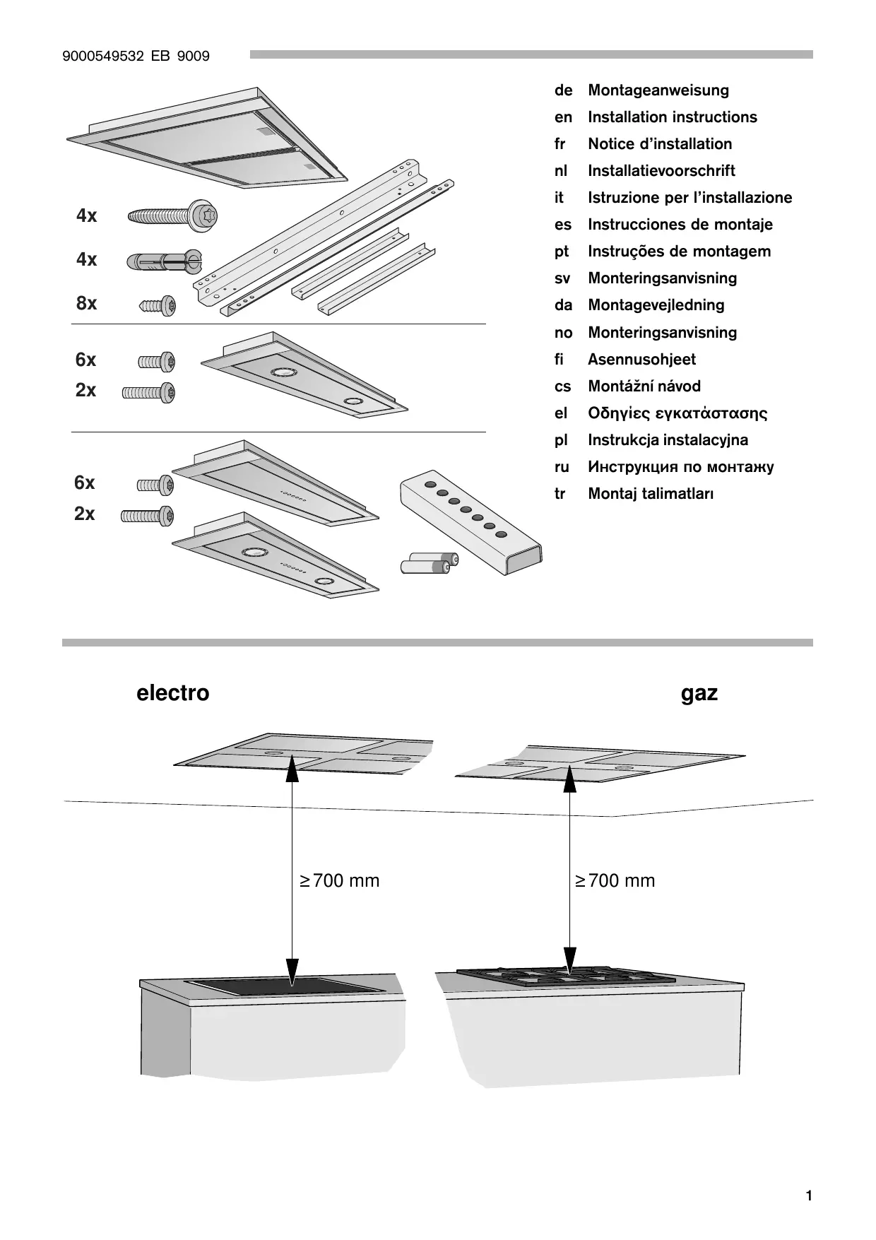 | Distance minimale au plan de cuisson électrique | ≥ 700 mm |