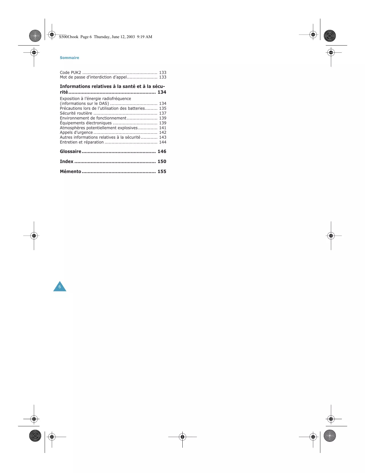 • S500f.book Page 6 Thursday, June 12, 2003 9:19 AM Sommaire Code PUK2 p. 133