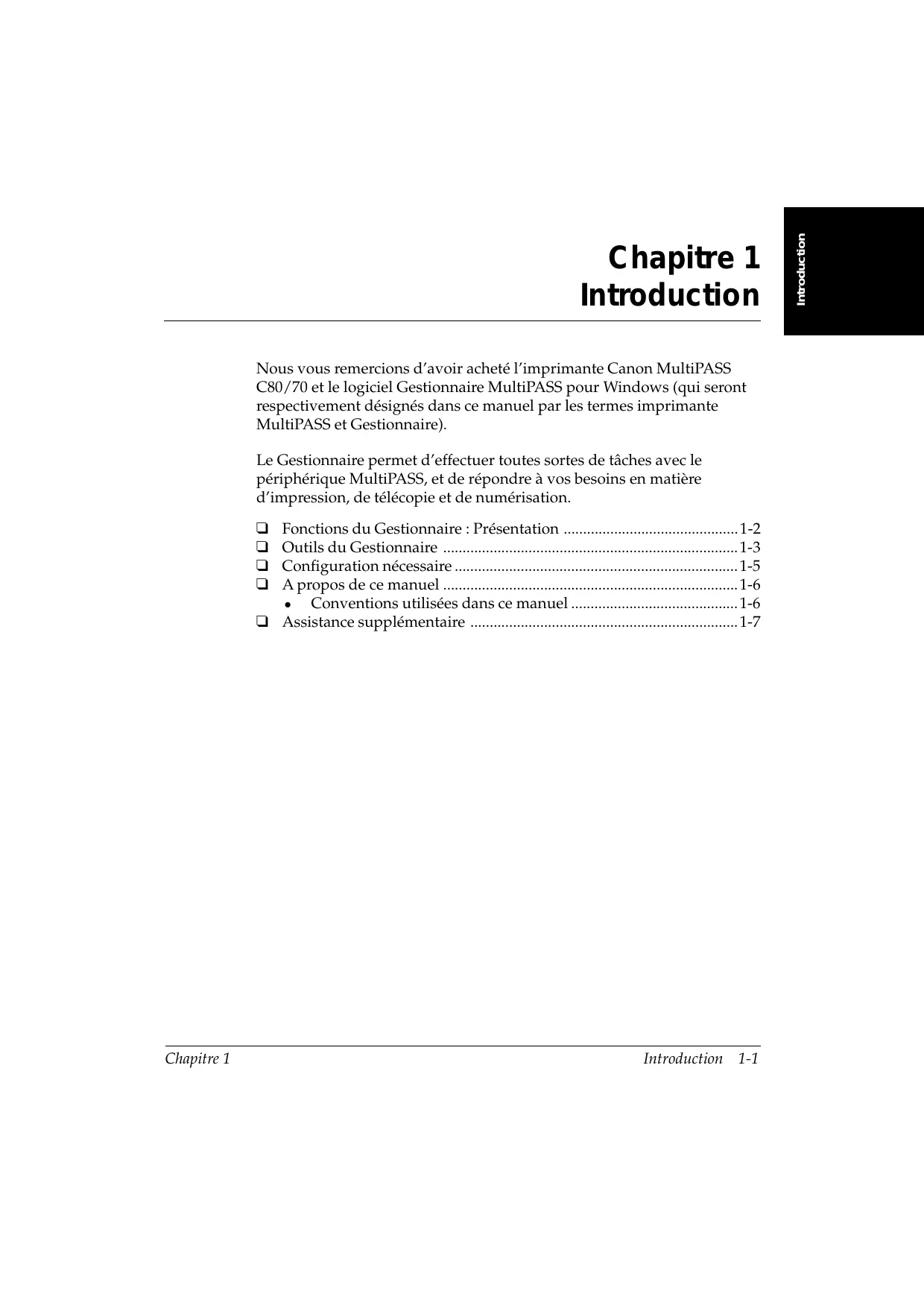 actif, état dans le Gestionnaire de télécopie 5-20 Afficher les documents description 4-9 manipulation d'un document 7-12 redisposition des documents 7-12 Alimentation papier mode d'impression (Win95/98) 3-11 annotations déplacement 7-61 inclusion lors de l'émission d'une télécopie 5-10 redimensionnement 7-61 révision 7-61 sélection 7-61 suppression 5-66, 7-62 Appareil photo mode d'impression (Win95/98) 3-8 Assembler option d'impression (Win95/98) 3-26 association documents à des E-mails 7-11 Attention nécessaire, état Serveur MultiPASS 8-28 auteur association des critères d'indexation 7-22 définition d'un index de recherche 7-16 recherche de documents 7-27 Auto mode d'impression (Win95/98) 3-8 Avancées - réception de télécopies périphérique MultiPASS 8-13 bac d'alimentation association d'un format de papier (WinNT) 3-53 bannière impression (Win95/98) 3-23 impression (WinNT) 3-50 barre de commandes présentation (Gestionnaire) 4-5 barre d'état dans le Visualiseur 7-35 présentation (Gestionnaire) 4-6 barre d'outils description (Créateur de pages de garde) 5-36, 7-33, 7-34 présentation (Gestionnaire) 5-19, 4-4 BJ Cartridge mode d'impression (Win95/98) 3-9, 3-11 mode d'impression (WinNT) 3-39 Bordure cadre option d'impression (Win95/98) 3-26 Brouillon mode d'impression (Win95/98) 3-8 mode d'impression (WinNT) 3-37 bruit suppression 5-58, 7-47 Index Index Index