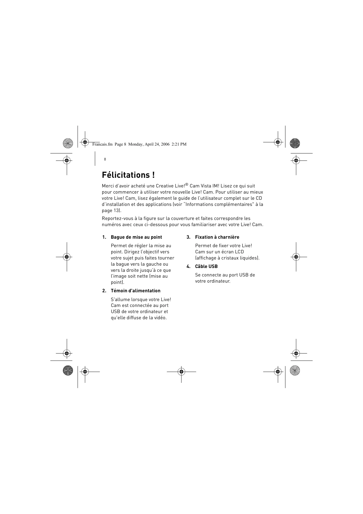 Live! Cam Vista IM_Multi CLE.book Page 9 Monday, April 24, 2006 2:08 PM Installation des pilotes et des applications 9