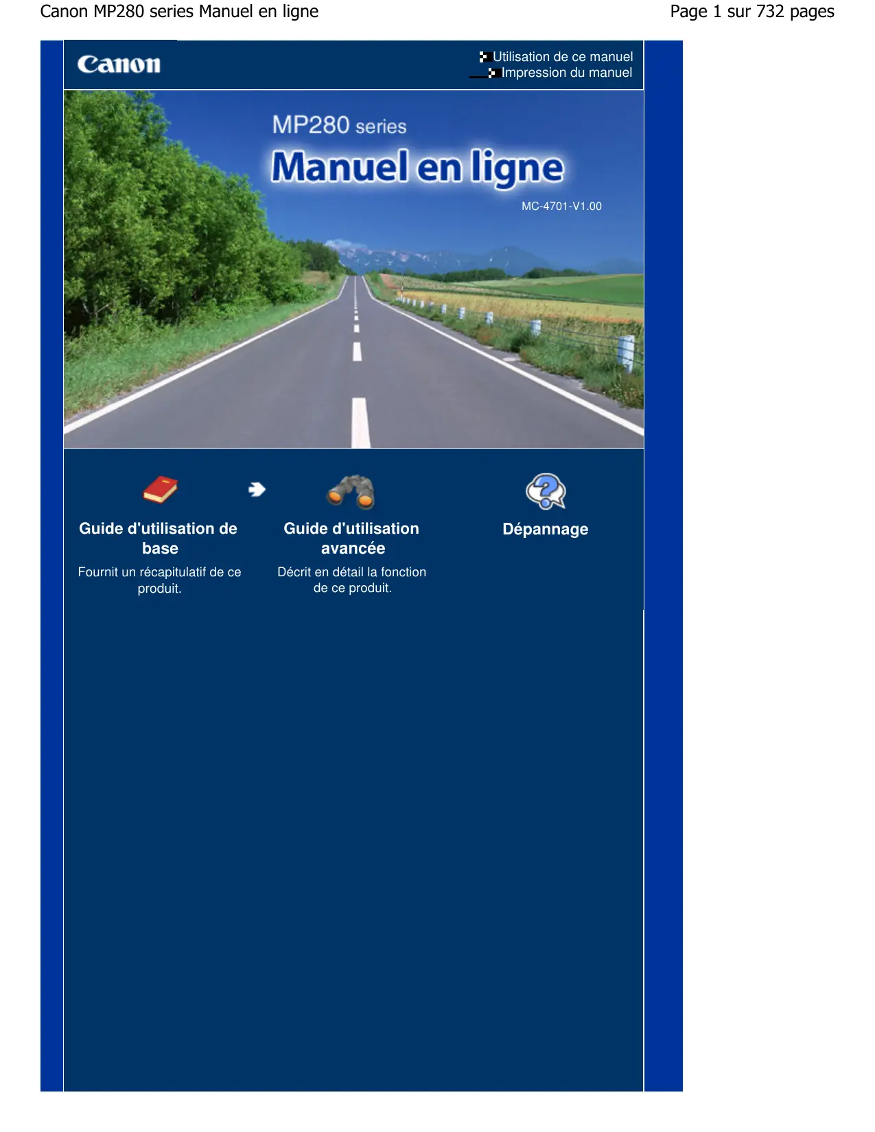 Retrouvez gratuitement la notice de l'appareil PIXMA MP280 CANON au format PDF.