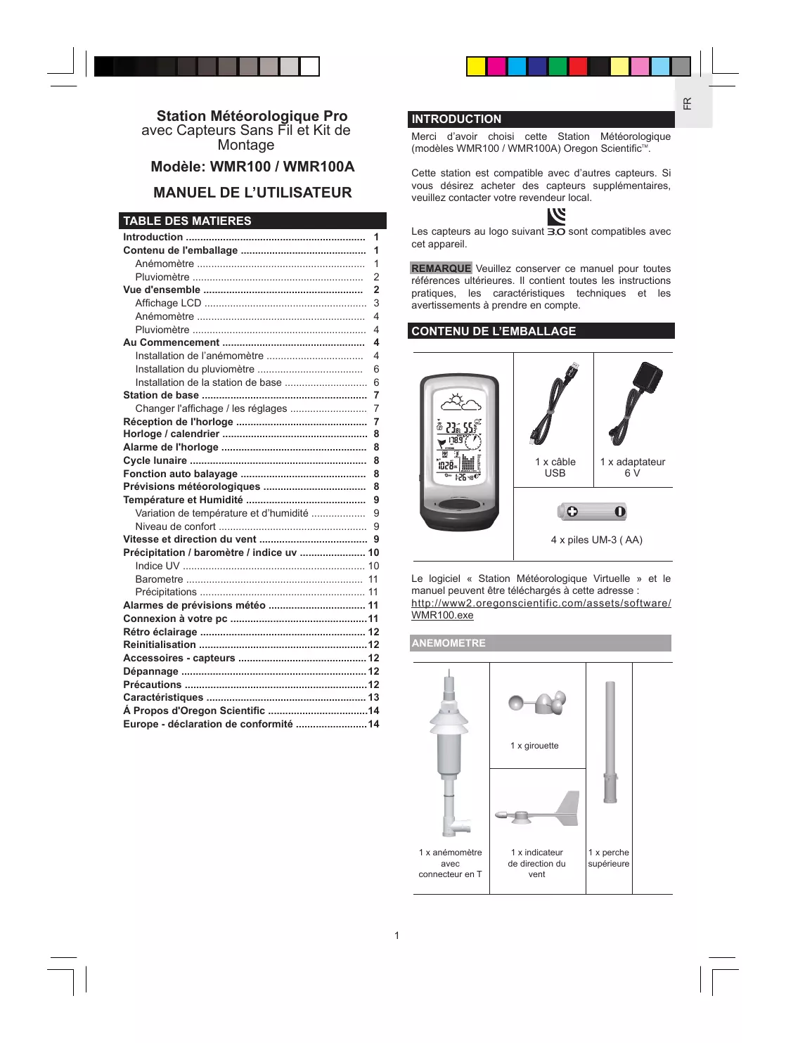 Retrouvez gratuitement la notice de l'appareil WMR100 OREGON SCIENTIFIC au format PDF.