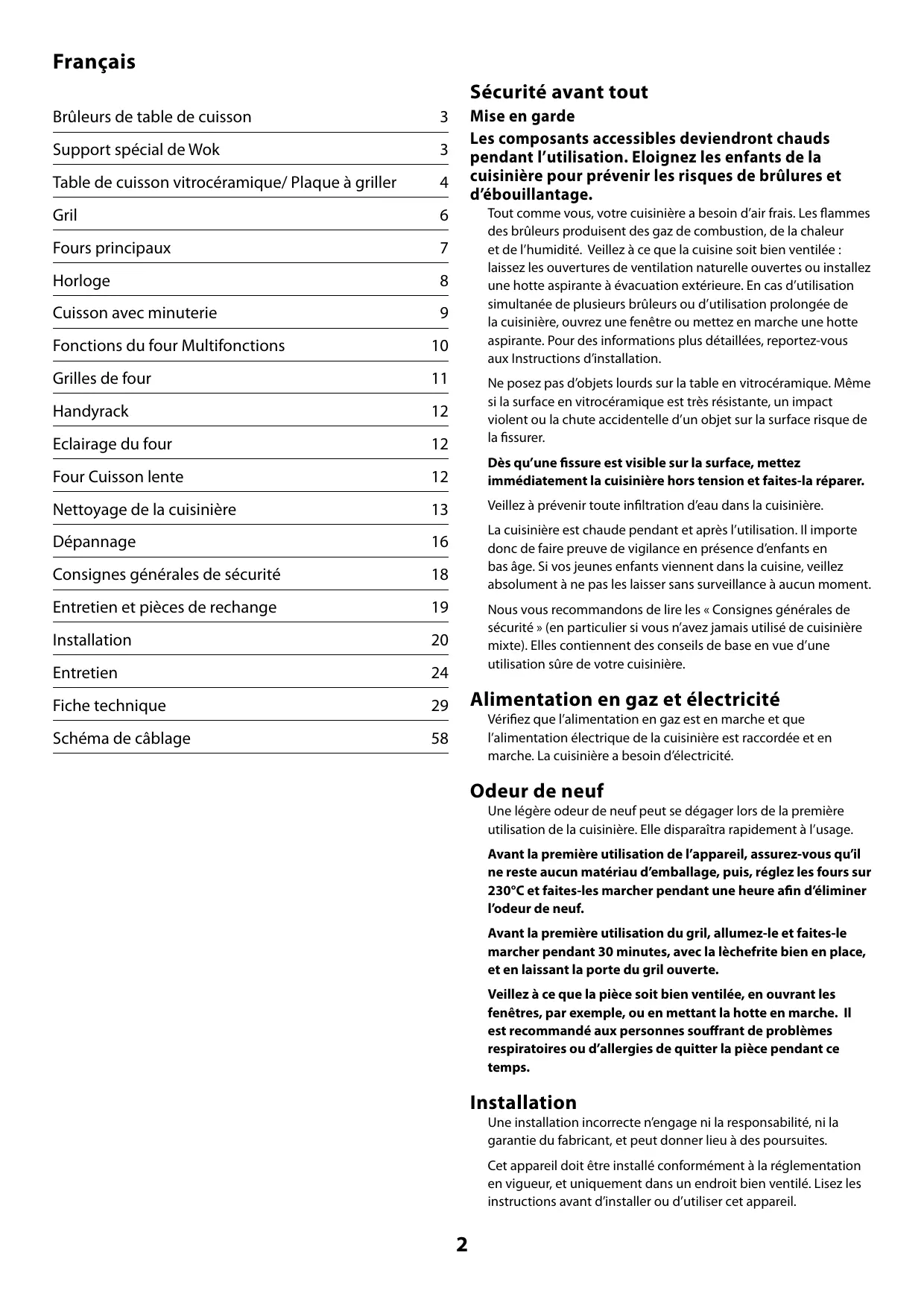 Nous vous recommendons de dire les « Consignes générales de sécurité » (en particulier si vous n'avez jamais utilisé de cusinière mixte). Elles contiennent des conseils de base en vue d'une utilisation sûre de votre cusinière.