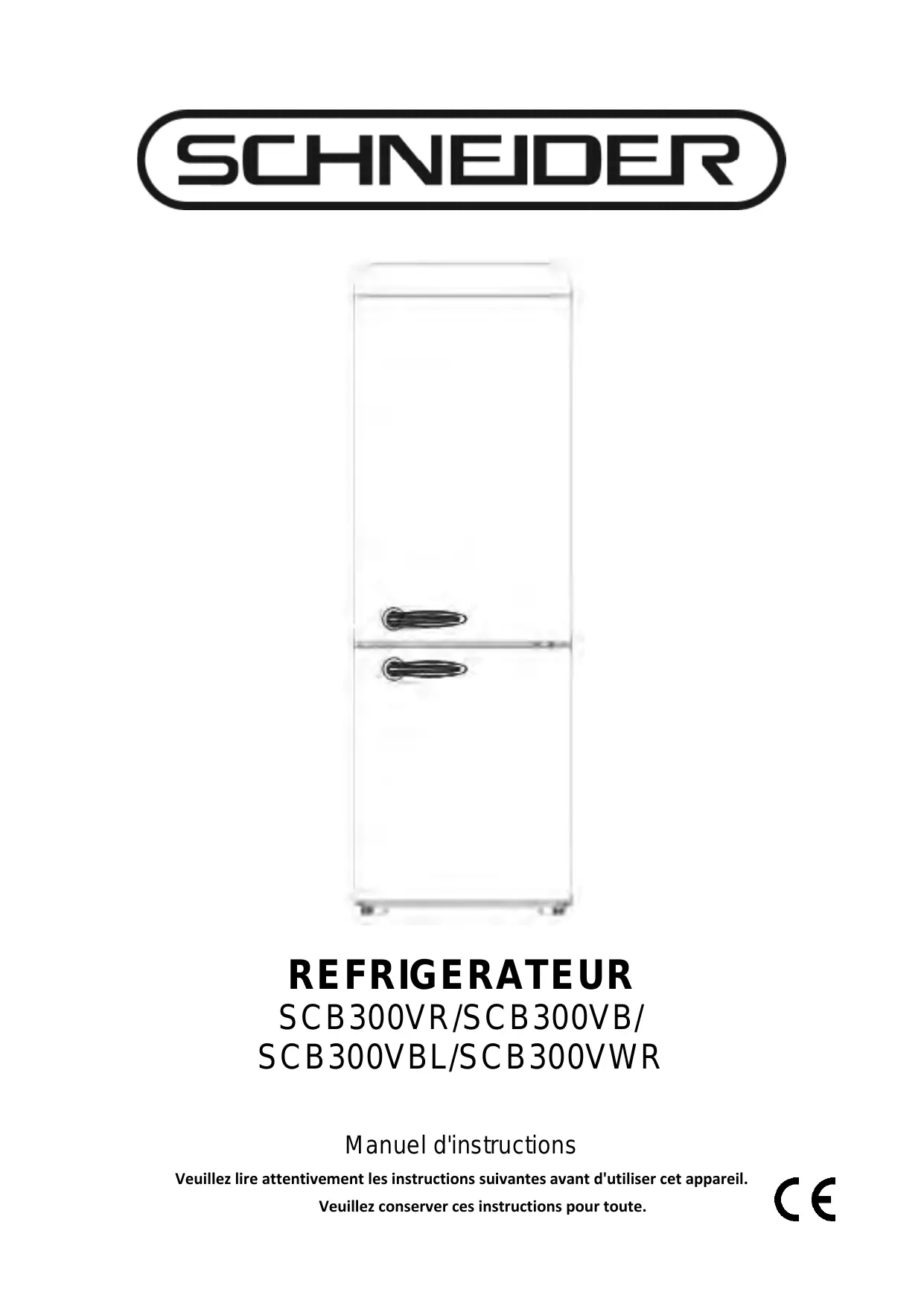 REFRIGERATEUR SCB300VR/SCB300VB/ SCB300VBL/SCB300VWR Manuel d'instructions Veuillez lire attentivement les instructions suivantes avant d'utiliser cet appareil. Veuillez conserver ces instructions pour toute.