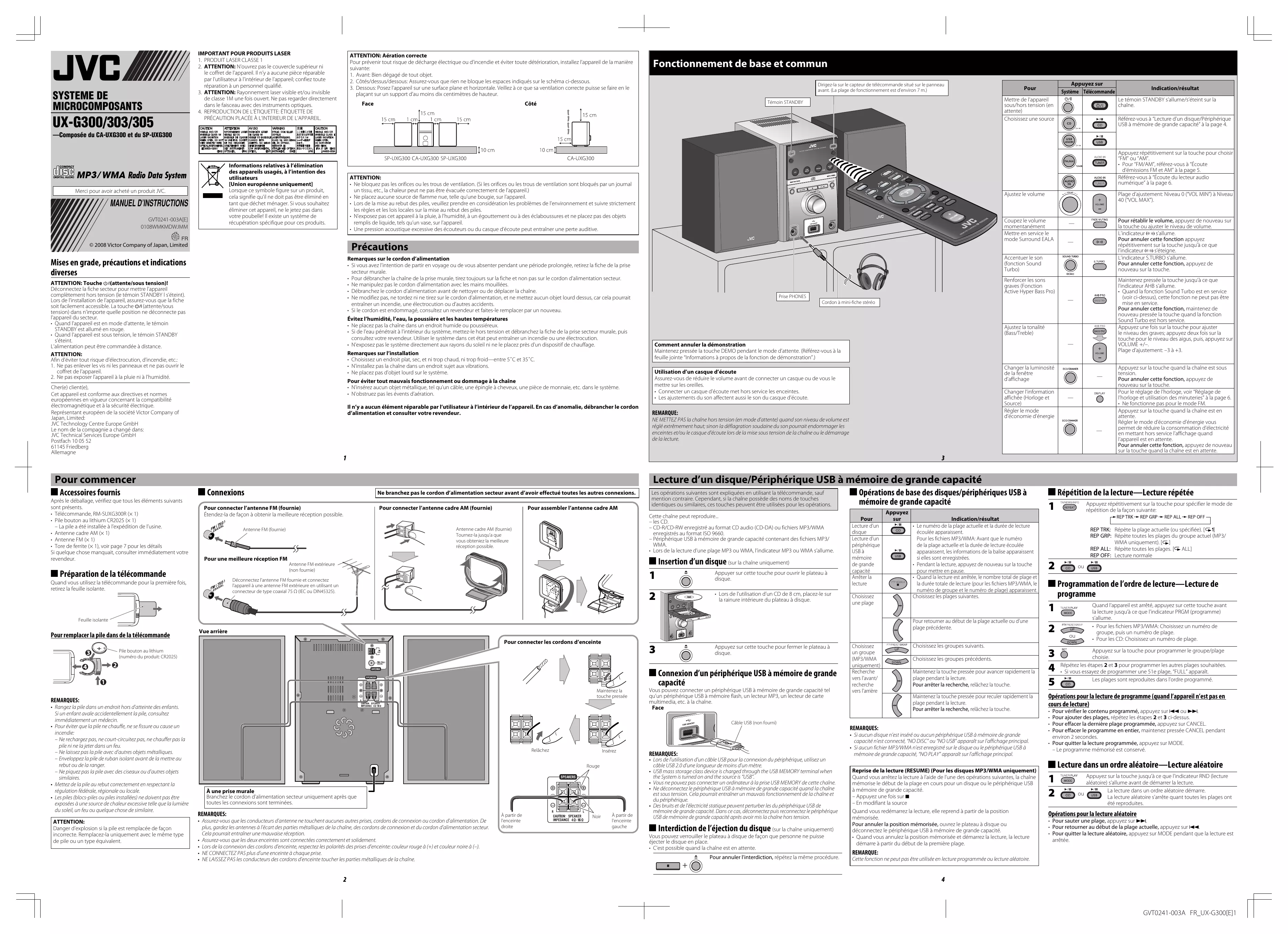 UX-G6303E - Système audio JVC - Notice d'utilisation et mode d'emploi gratuit