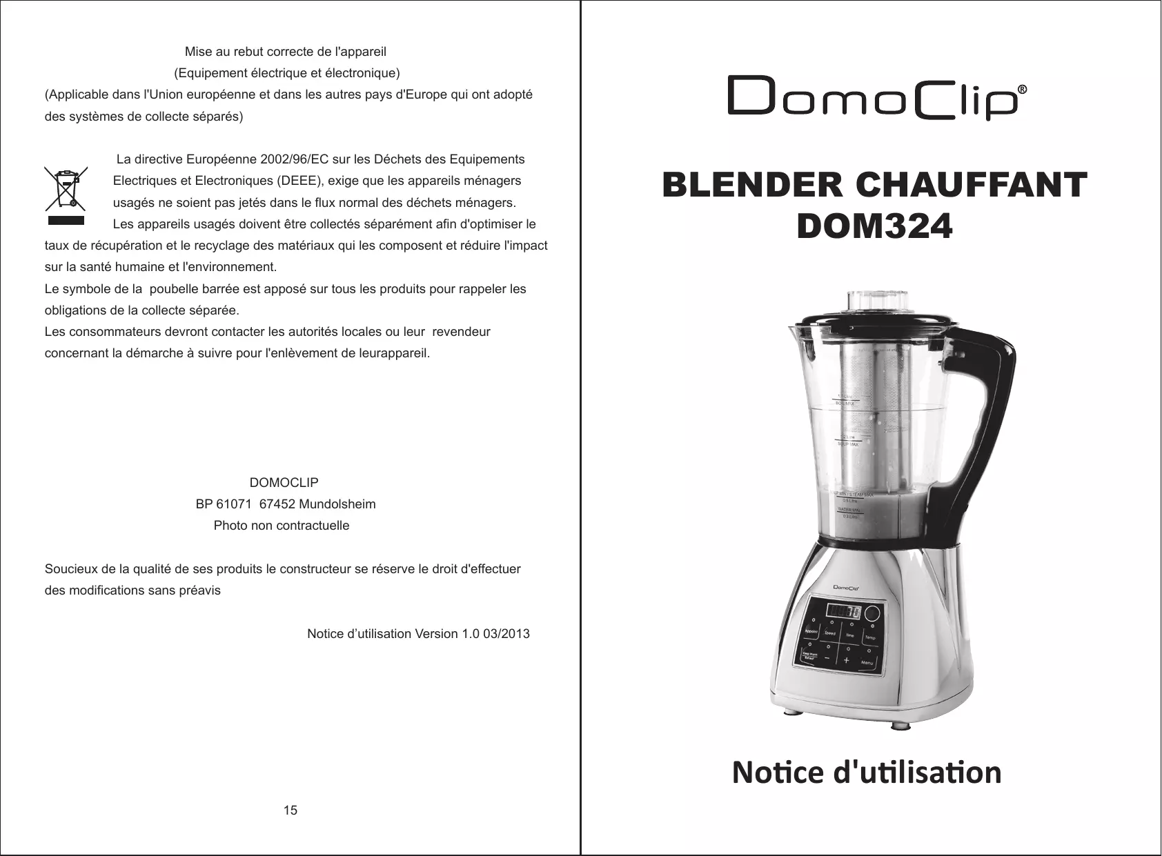DOM324CHAUFFANT - Blender chauffant DOMOCLIP - Notice d'utilisation et mode d'emploi gratuit
