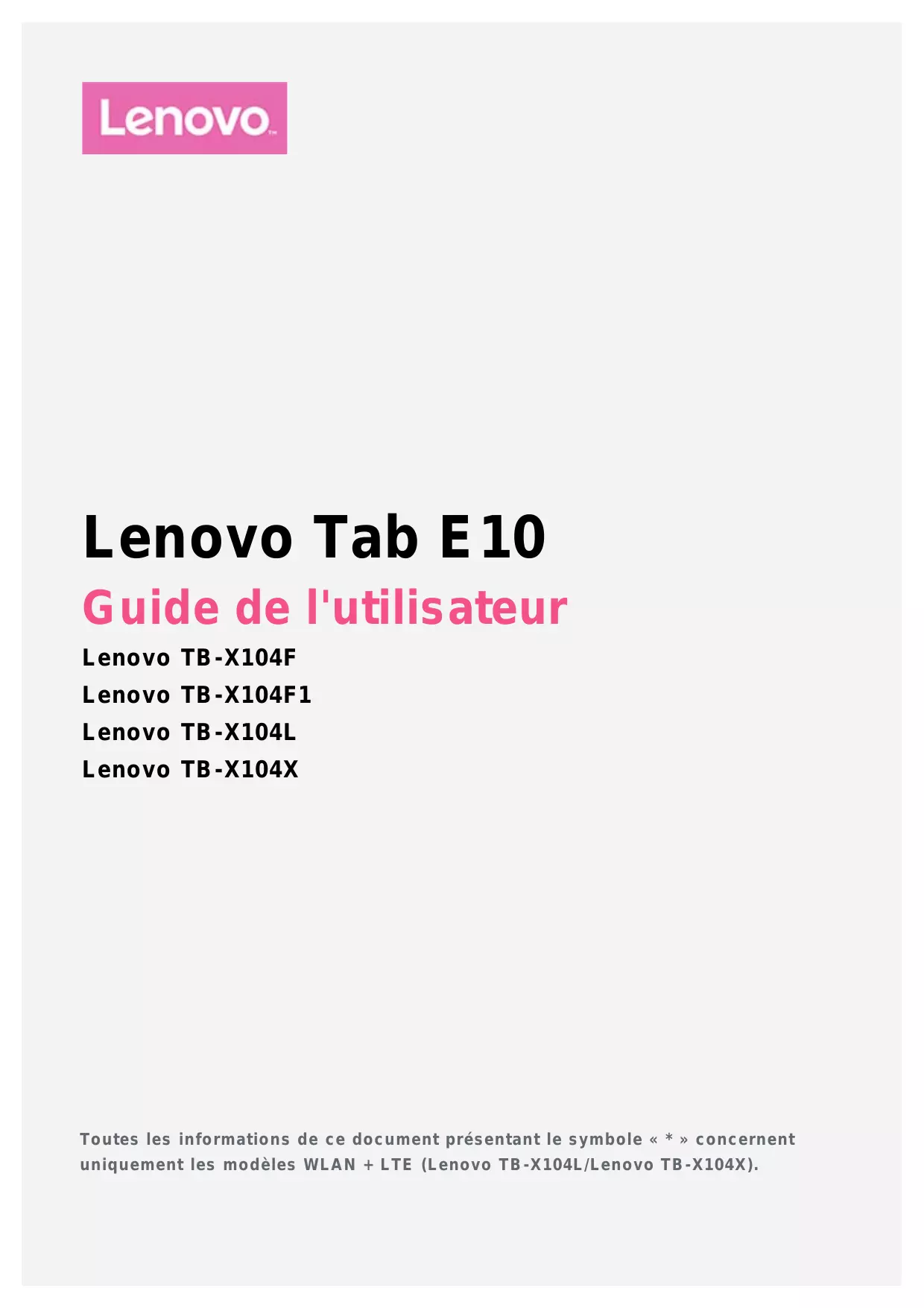 Lenovo Tab E10 Guide de l'utilisateur Lenovo TB-X104F Lenovo TB-X104F1