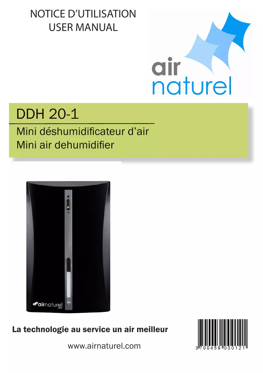 USER MANUAL DDH 20-1 Mini déshumidificateur d’air Mini air dehumidifier La technologie au service un air meilleur www.airnaturel.com