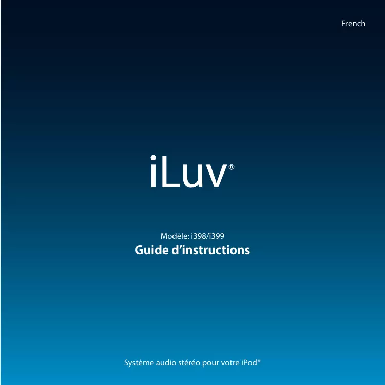 Nous vous remercions d’avoir acheté ce nouveau i399/i398 de iLuv pour votre iPod. Conçu uniquement pour fonctionner avec votre iPod, ce système audio Hi-Fi iLuv avec station d’accueil universelle intégrée offre une performance supérieure audio et radio qui vous procurera le meilleur de votre musique. Veuillez conserver ce manuel pour toute future référence. Maximalisez votre plaisir d’écoute musicale sur votre iPod avec le système audio Hi-Fi iLuv