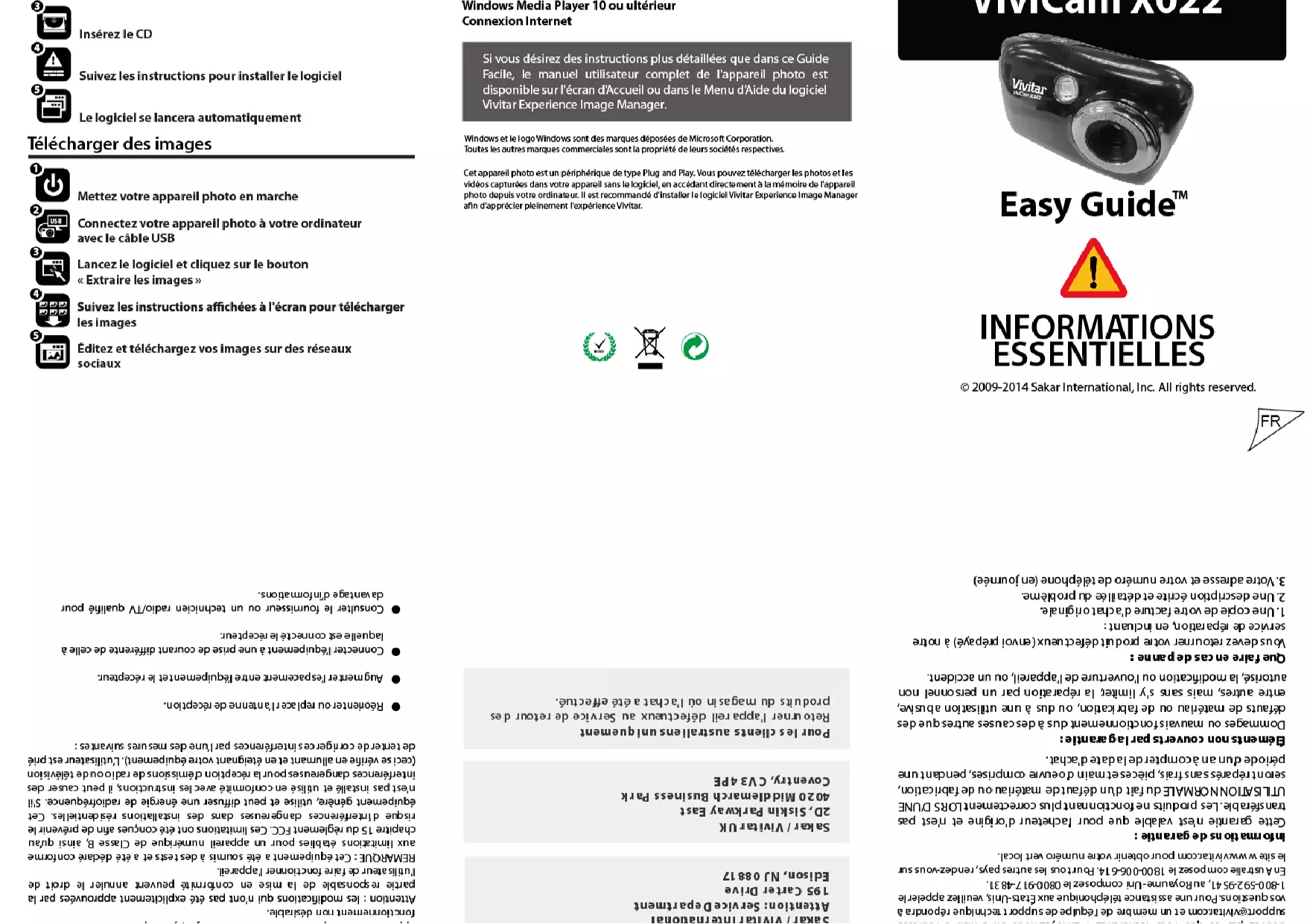 Si vous désirez des instructions plus détaillées que dans ce Guide Facile, le manuel utiliseur compte de l'appareil photo est disponible sur l'écran d'Accueil ou dans le Menu d'Aide du logiciel Vivitar Experience Image Manager.