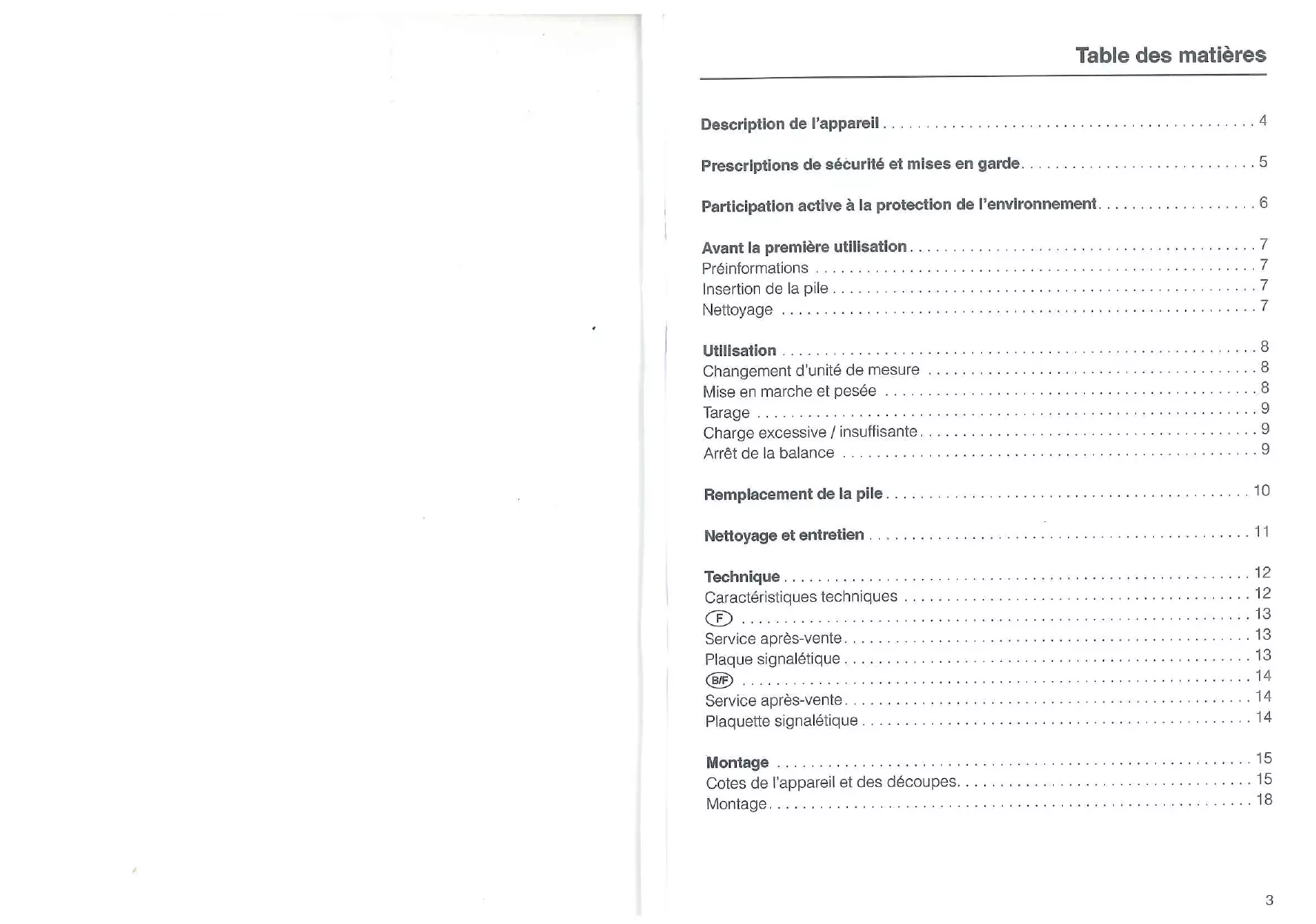 Ne soulevez la surface de pesée qu'avac la touche de commande. N'utilise pas d'objets metalliques, susceptibles de rayer l'entourage.