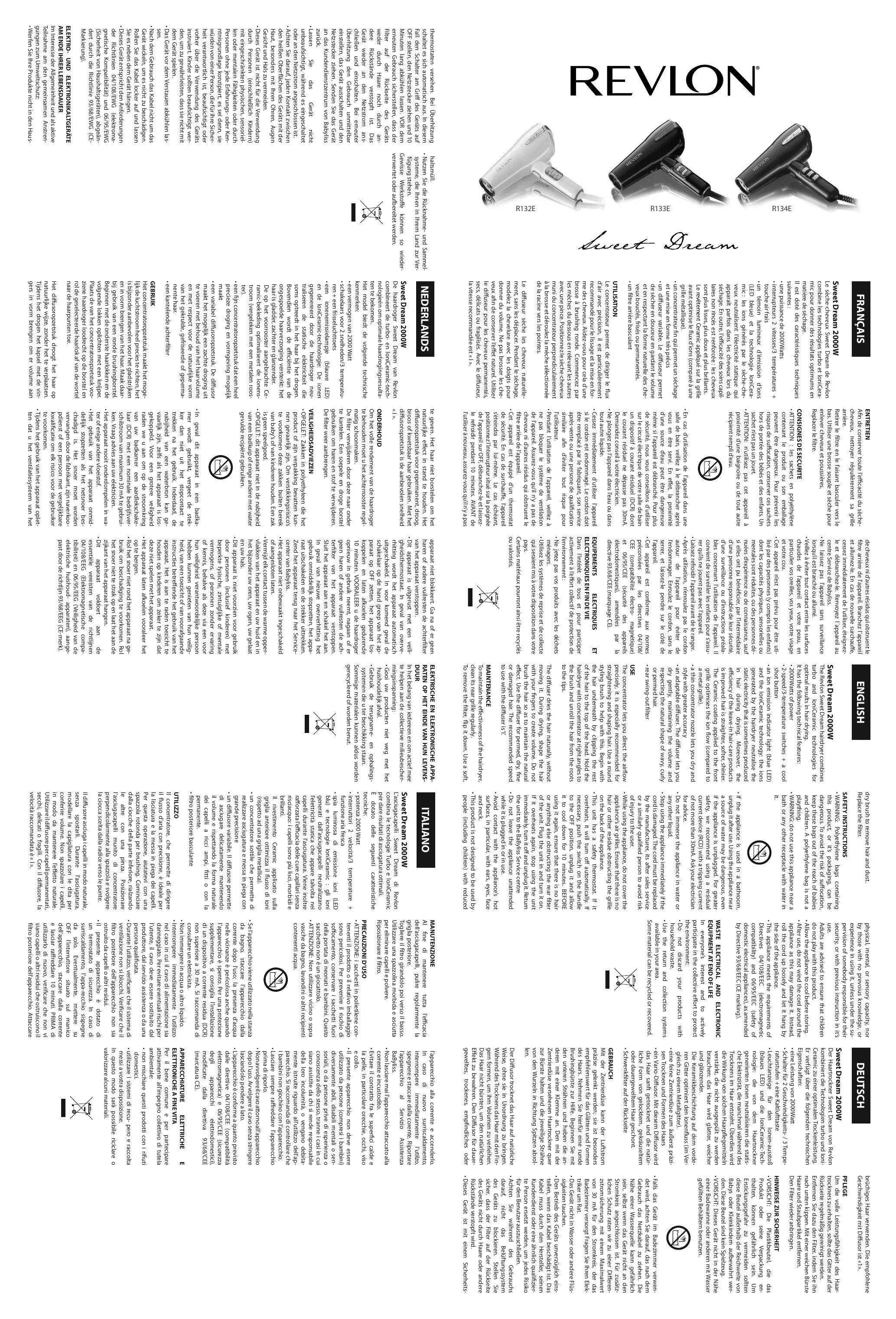 Retrouvez gratuitement la notice de l'appareil R 123 E WHITE PIANO REVLON au format PDF.