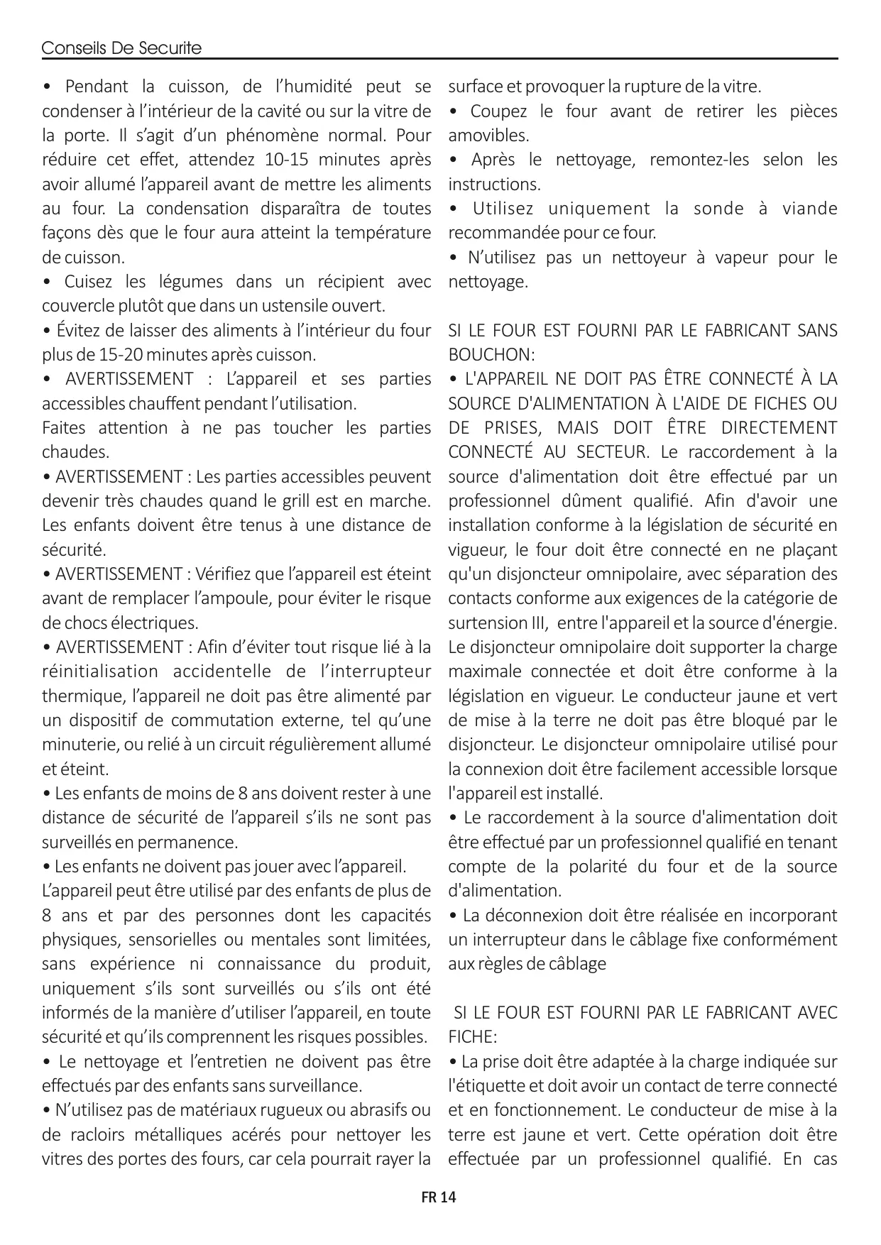 - La déconnexion doit être réalisée en incorporant un interrupteur dans le câblage fixe conformément aux règles de câblage SI LE FOUR EST FOURNI PAR LE FABRICANT AVEC FICHE: